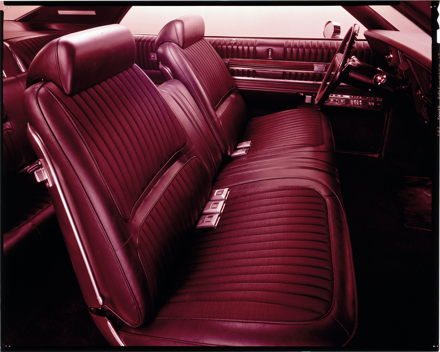 Favorite this☆ Oldsmobile automobile interior Description: View of the interior of an Oldsmobile automobile, showing steering wheel and front seats. Label on sleeve: "General Motors, Oldsmobile interior, date unknown." Details Resource ID: na036408 Creator: Boulevard Photographic (Firm) Subject: Oldsmobile automobile Automobiles--Interiors Automobiles--Seats Advertising--Automobiles Transparencies Date Issued: Unknown year Format: 1 transparency : col. ; 8 x 10 in. Member of: National Automotive History Collection Mickey McGuire and Jim Northmore Boulevard Photographic Collection Filing Location: Oldsmobile, 11:20 Rights: Physical rights are retained by DPL. Copyright is retained in accordance with U.S. copyright laws.