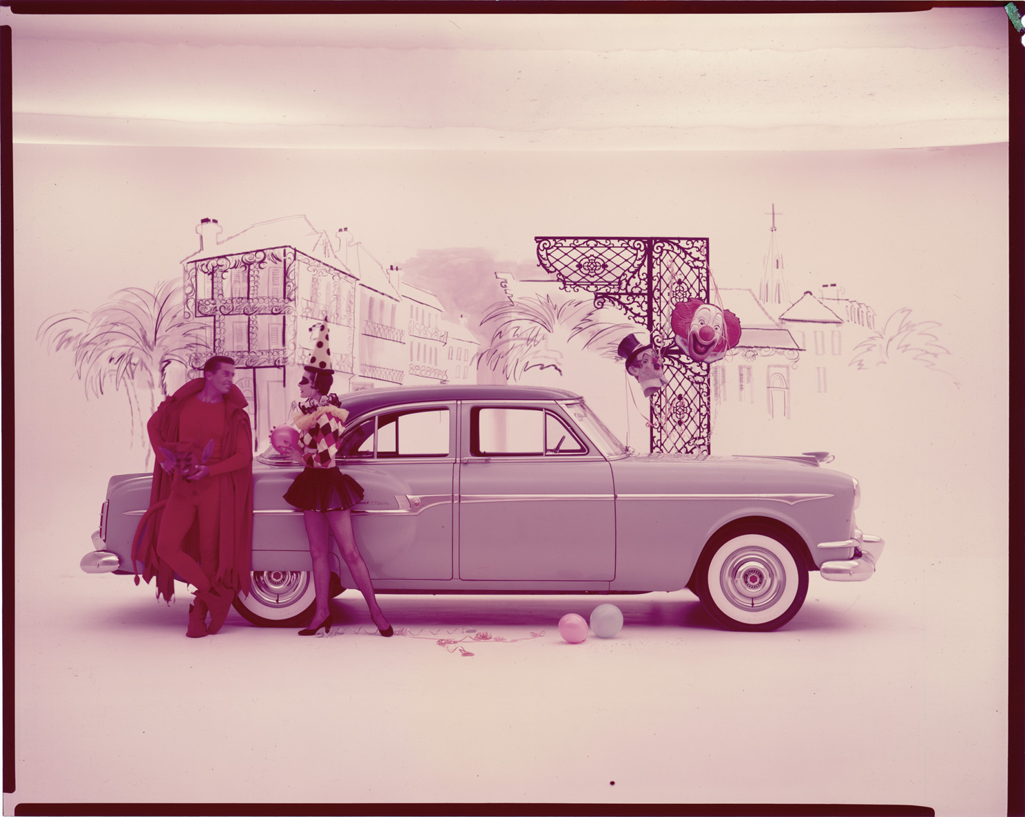 Favorite this☆ 1954 Packard Clipper automobile Description: View of a woman, costumed as a clown, and a man, costumed as a devil, posing with a 1954 Packard Clipper sedan. Masks and an illustration of buildings in background. Label on sleeve: "Packard, 1954." Details Resource ID: na036445 Creator: Boulevard Photographic (Firm) Subject: Packard automobile Clowns Devil Advertising--Automobiles Transparencies Date Issued: 1954 Format: 1 transparency : col. ; 8 x 10 in. Member of: National Automotive History Collection Mickey McGuire and Jim Northmore Boulevard Photographic Collection Filing Location: Packard, 12:3 Rights: Physical rights are retained by DPL. Copyright is retained in accordance with U.S. copyright laws.