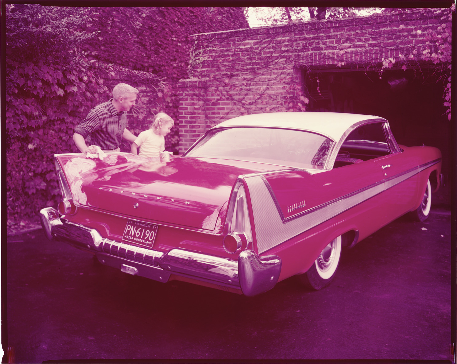 Favorite this☆ 1958 Plymouth Belvedere automobile Description: View of a man and a young girl washing a 1958 Plymouth Belvedere coupe. Label on sleeve: "Chrysler Corp., Plymouth Belvedere, used for advertising, 1958." Details Resource ID: na036461 Creator: Boulevard Photographic (Firm) Subject: Plymouth automobile Advertising--Automobiles Transparencies Date Issued: 1958 Format: 1 transparency : col. ; 8 x 10 in. Member of: National Automotive History Collection Mickey McGuire and Jim Northmore Boulevard Photographic Collection Filing Location: Plymouth, 12:5 Rights: Physical rights are retained by DPL. Copyright is retained in accordance with U.S. copyright laws.