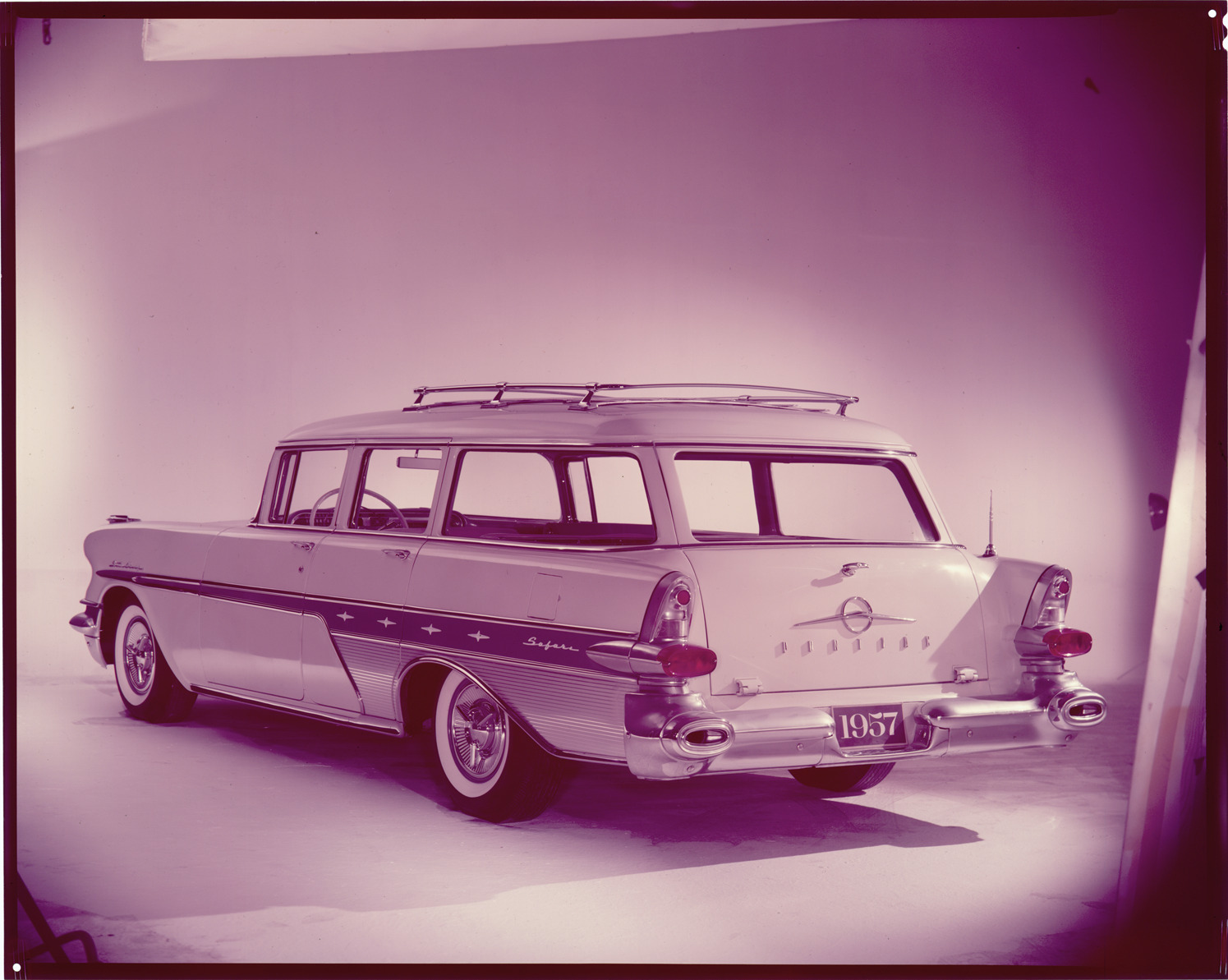 Favorite this☆ 1957 Pontiac Safari station wagon Description: View of a 1957 Pontiac Safari station wagon. Label on sleeve: "General Motors, Pontiac Safari wagon, 1957." Details Resource ID: na036661 Creator: Boulevard Photographic (Firm) Subject: Pontiac automobile Station wagons Advertising--Automobiles Transparencies Date Issued: 1957 Format: 1 transparency : col. ; 8 x 10 in. Member of: National Automotive History Collection Mickey McGuire and Jim Northmore Boulevard Photographic Collection Filing Location: Pontiac, 13:1 Rights: Physical rights are retained by DPL. Copyright is retained in accordance with U.S. copyright laws.