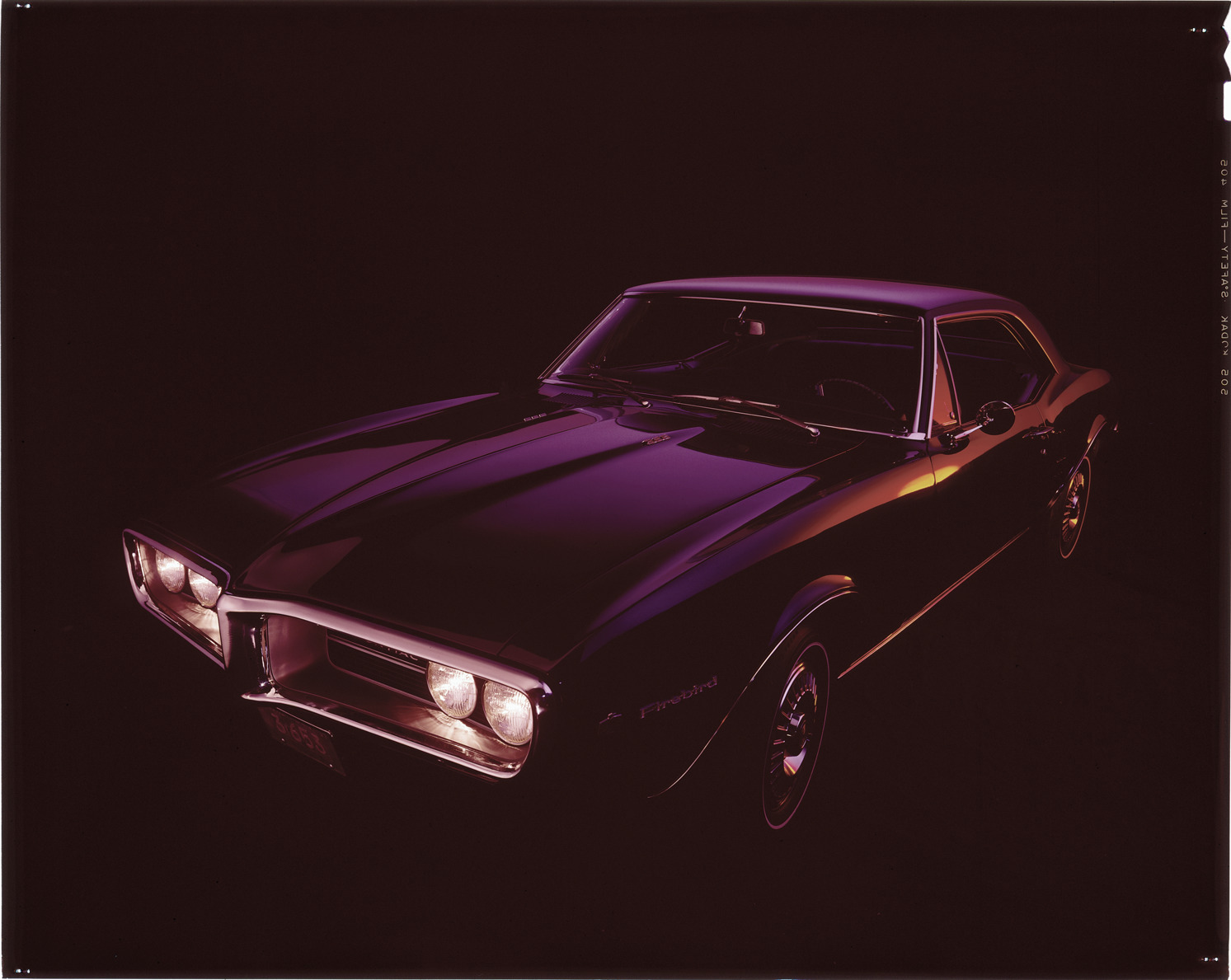 View of a Pontiac Firebird coupe. Label on sleeve: "General Motors, Pontiac Firebird, 1967-68."