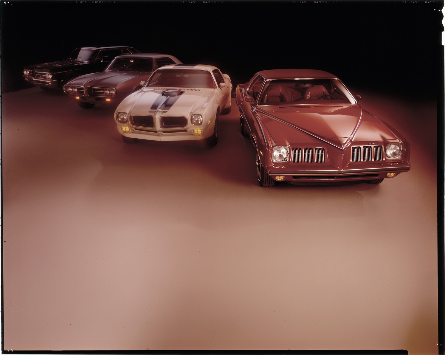 Favorite this☆ Pontiac automobiles Description: View of a 1973 Pontiac Grand Am coupe, a 1971 Pontiac Firebird coupe, a 1968 Pontiac Firebird coupe and a 1964 Pontiac GTO coupe. Label on sleeve: "General Motors, Pontiac, 1973 Grand Am, 1971 Firebird, 1968 Firebird, 1964 GTO." Details Resource ID: na036784 Creator: Boulevard Photographic (Firm) Subject: Pontiac automobile Grand Am automobile Firebird automobile GTO automobile Advertising--Automobiles Transparencies Date Issued: Unknown year Format: 1 transparency : col. ; 8 x 10 in. Member of: National Automotive History Collection Mickey McGuire and Jim Northmore Boulevard Photographic Collection Filing Location: Pontiac, 13:7 Rights: Physical rights are retained by DPL. Copyright is retained in accordance with U.S. copyright laws.