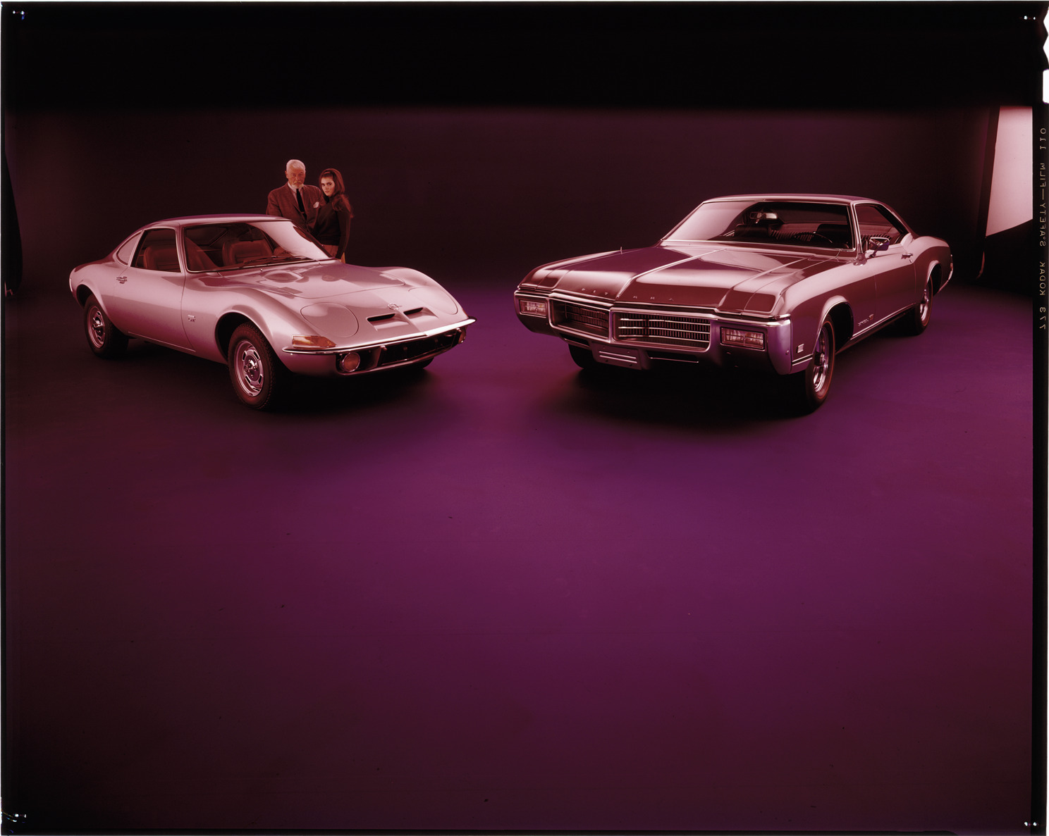 Favorite this☆ 1969 Opel GT and Buick Riviera automobiles Description: View of a man and woman posing with a 1969 Opel GT coupe and a 1969 Buick Riviera coupe. Label on sleeve: "Opel GT, 1969. Buick Riviera, 1969." Details Resource ID: na037006 Creator: Boulevard Photographic (Firm) Subject: Opel automobile Riviera automobile Advertising--Automobiles Transparencies Date Issued: 1969 Format: 1 transparency : col. ; 8 x 10 in. Member of: National Automotive History Collection Mickey McGuire and Jim Northmore Boulevard Photographic Collection Filing Location: Opel, 12:1 Rights: Physical rights are retained by DPL. Copyright is retained in accordance with U.S. copyright laws.