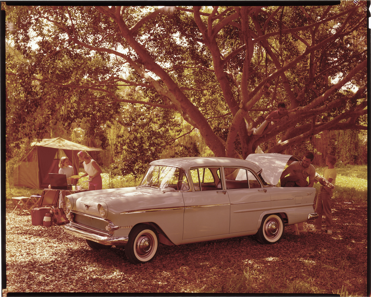 Favorite this☆ Vauxhall automobile Description: View of a family on a camping trip posing with a Vauxhall sedan. Label on sleeve: "Vauxhall, 1957-60." Details Resource ID: na037061 Creator: Boulevard Photographic (Firm) Subject: Vauxhall automobile Advertising--Automobiles Transparencies Date Issued: 1957 to 1960 Format: 1 transparency : col. ; 8 x 10 in. Member of: National Automotive History Collection Mickey McGuire and Jim Northmore Boulevard Photographic Collection Filing Location: Vauxhall, 13:17 Rights: Physical rights are retained by DPL. Copyright is retained in accordance with U.S. copyright laws.