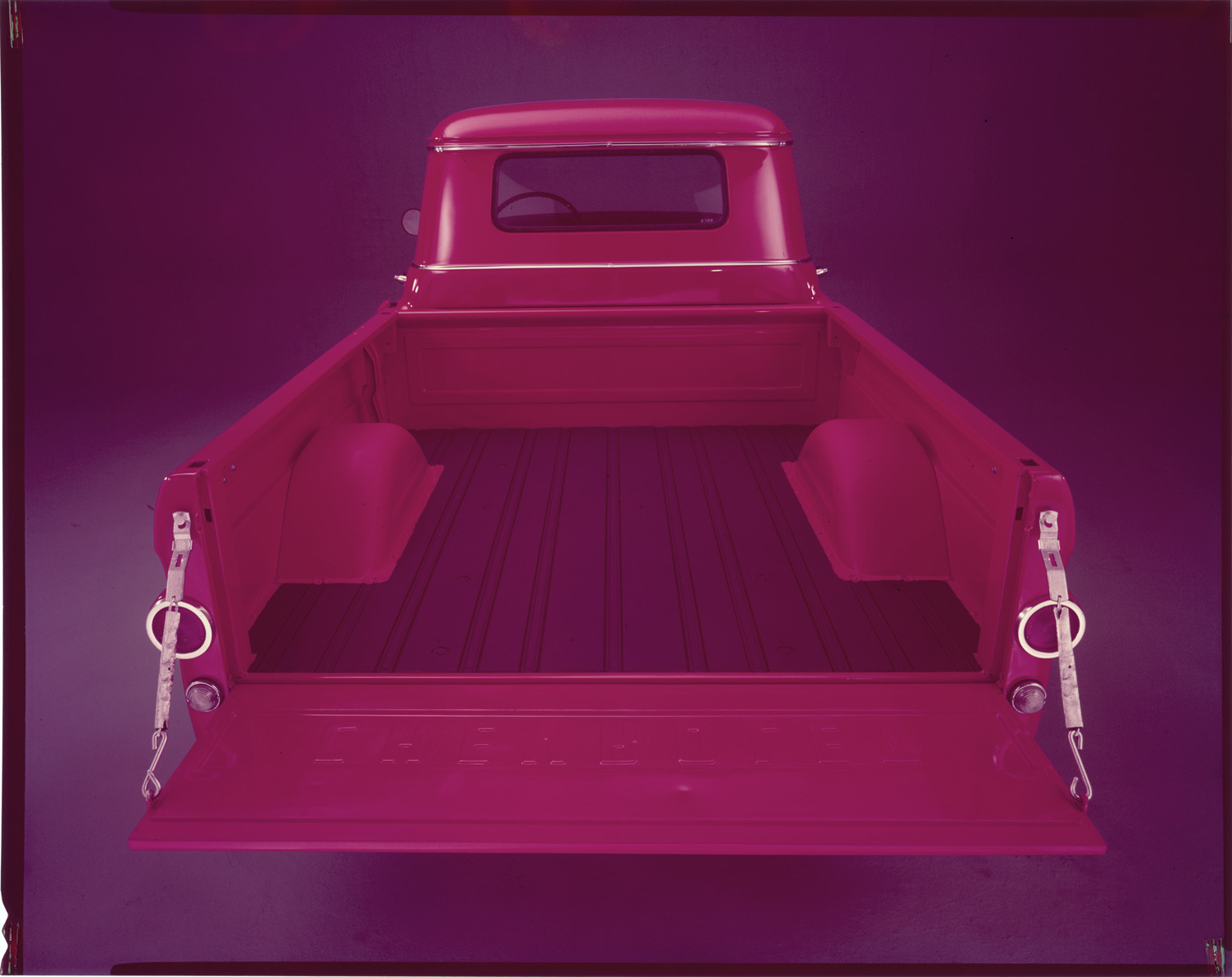 Favorite this☆ 1958 Chevrolet truck Description: Rear view of a 1958 Chevrolet pickup truck. Label on sleeve: "General Motors, Chevrolet rear end pickup, 1958." Details Resource ID: na037120 Creator: Boulevard Photographic (Firm) Subject: Chevrolet trucks Pickup trucks Advertising Transparencies Date Issued: 1958 Format: 1 transparency : col. ; 8 x 10 in. Member of: National Automotive History Collection Mickey McGuire and Jim Northmore Boulevard Photographic Collection Filing Location: Chevrolet trucks, 3:1 Rights: Physical rights are retained by DPL. Copyright is retained in accordance with U.S. copyright laws.