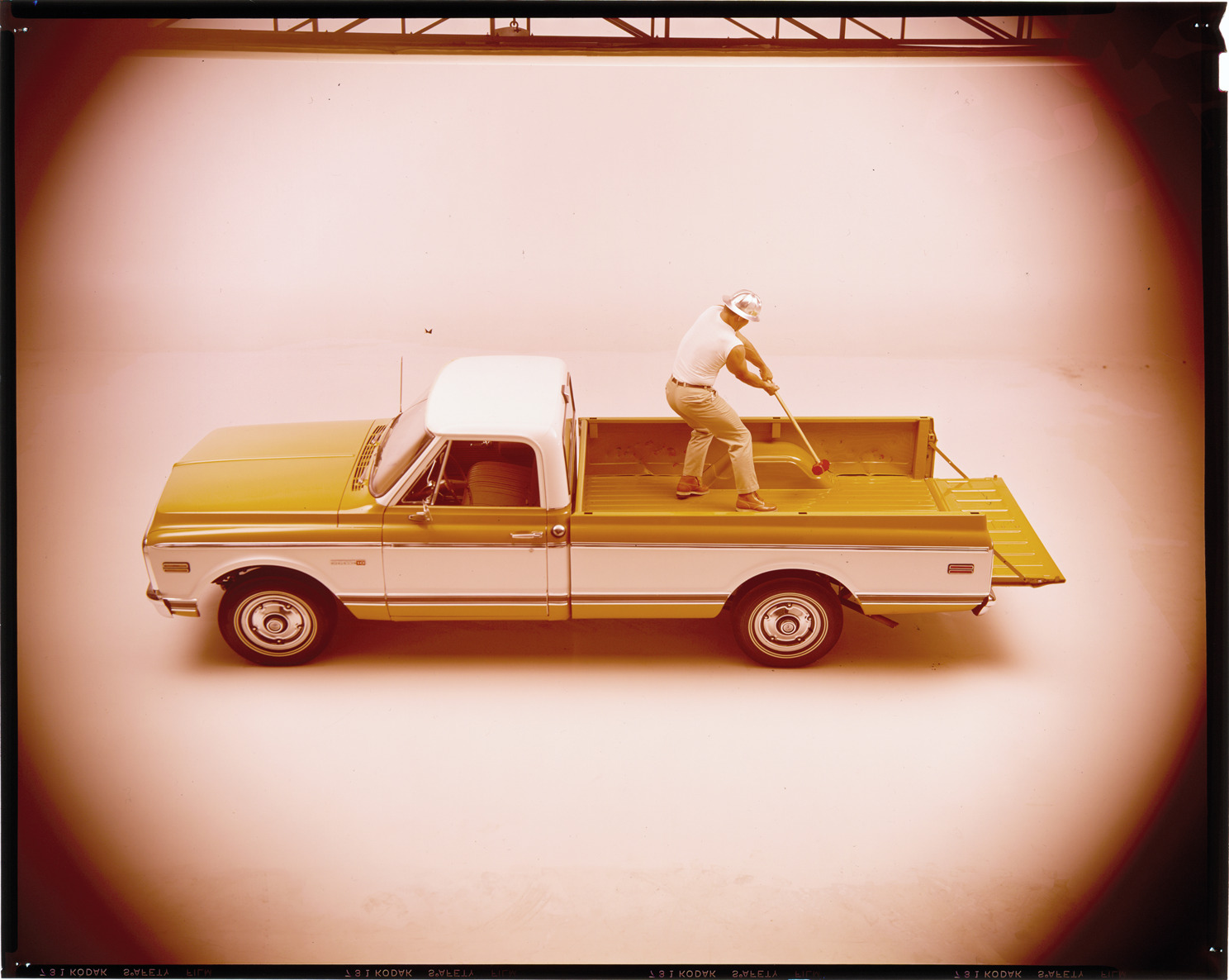 Favorite this☆ 1970 Chevrolet truck Description: View of a construction worker with a sledge hammer in the bed of a 1970 Chevrolet pickup truck. Label on sleeve: "General Motors, Chevrolet pickup, 1970." Details Resource ID: na037179 Creator: Boulevard Photographic (Firm) Subject: Chevrolet trucks Pickup trucks Advertising Transparencies Date Issued: 1970 Format: 1 transparency : col. ; 8 x 10 in. Member of: National Automotive History Collection Mickey McGuire and Jim Northmore Boulevard Photographic Collection Filing Location: Chevrolet trucks, 3:4 Rights: Physical rights are retained by DPL. Copyright is retained in accordance with U.S. copyright laws.