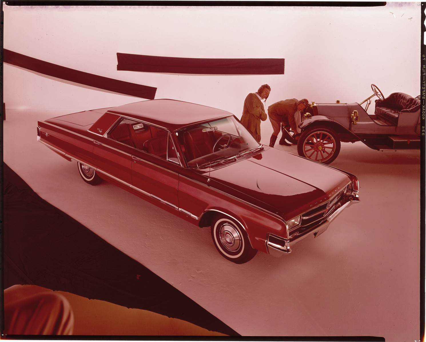 Favorite this☆ 1965 Chrysler automobile Description: View of a 1965 Chrysler sedan. Two men, wearing helmets and goggles, pose with classic roadster in background. Label on sleeve: "Chrysler Corporation, Chrysler, 1965." Details Resource ID: na037211 Creator: Boulevard Photographic (Firm) Subject: Chrysler automobile Advertising--Automobiles Transparencies Date Issued: 1965 Format: 1 transparency : col. ; 8 x 10 in. Member of: National Automotive History Collection Mickey McGuire and Jim Northmore Boulevard Photographic Collection Filing Location: Chrysler, 3:8 Rights: Physical rights are retained by DPL. Copyright is retained in accordance with U.S. copyright laws.