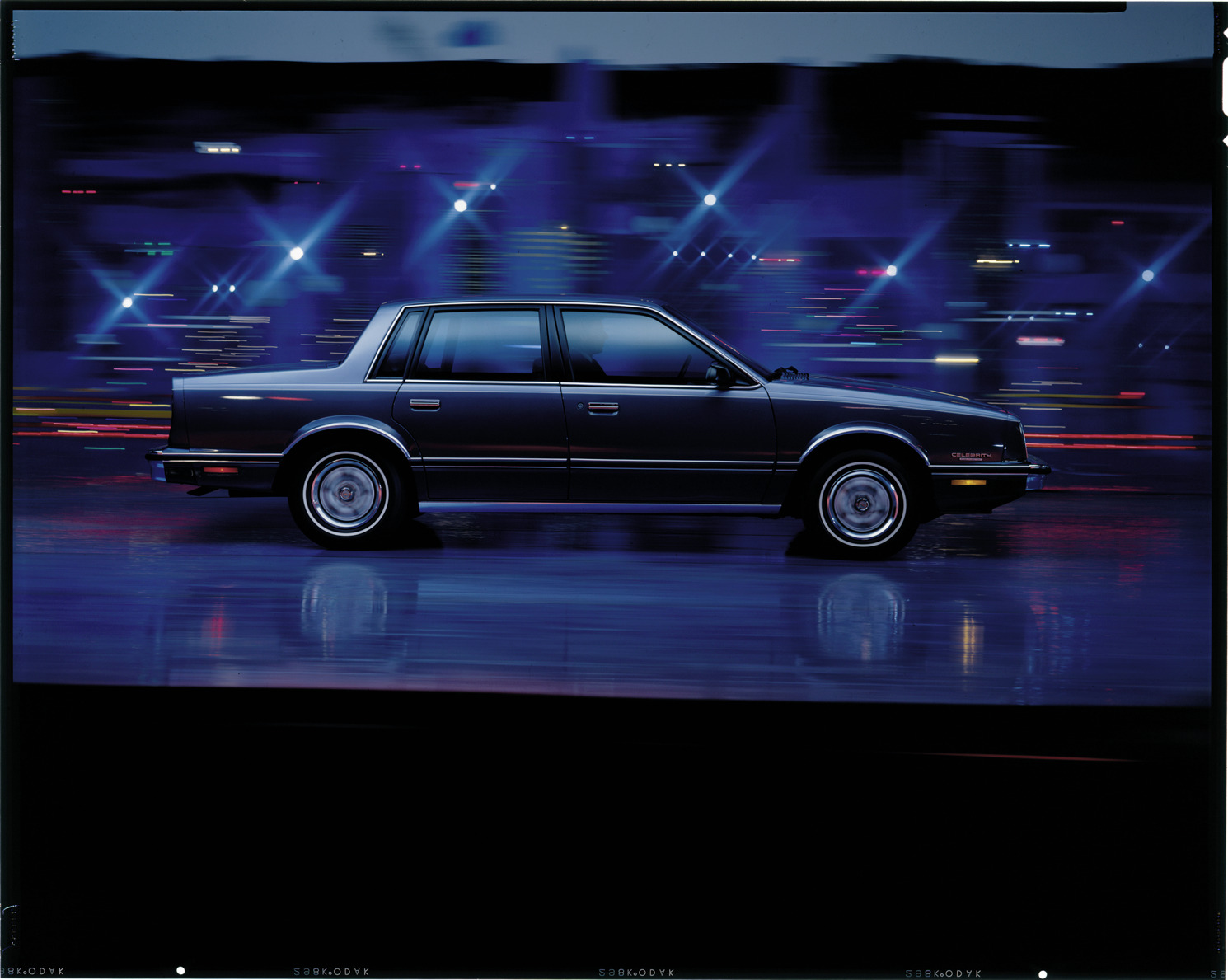 View of a 1982 Chevrolet Celebrity sedan. Label on sleeve: "General Motors, Chevrolet Celebrity, 1982."