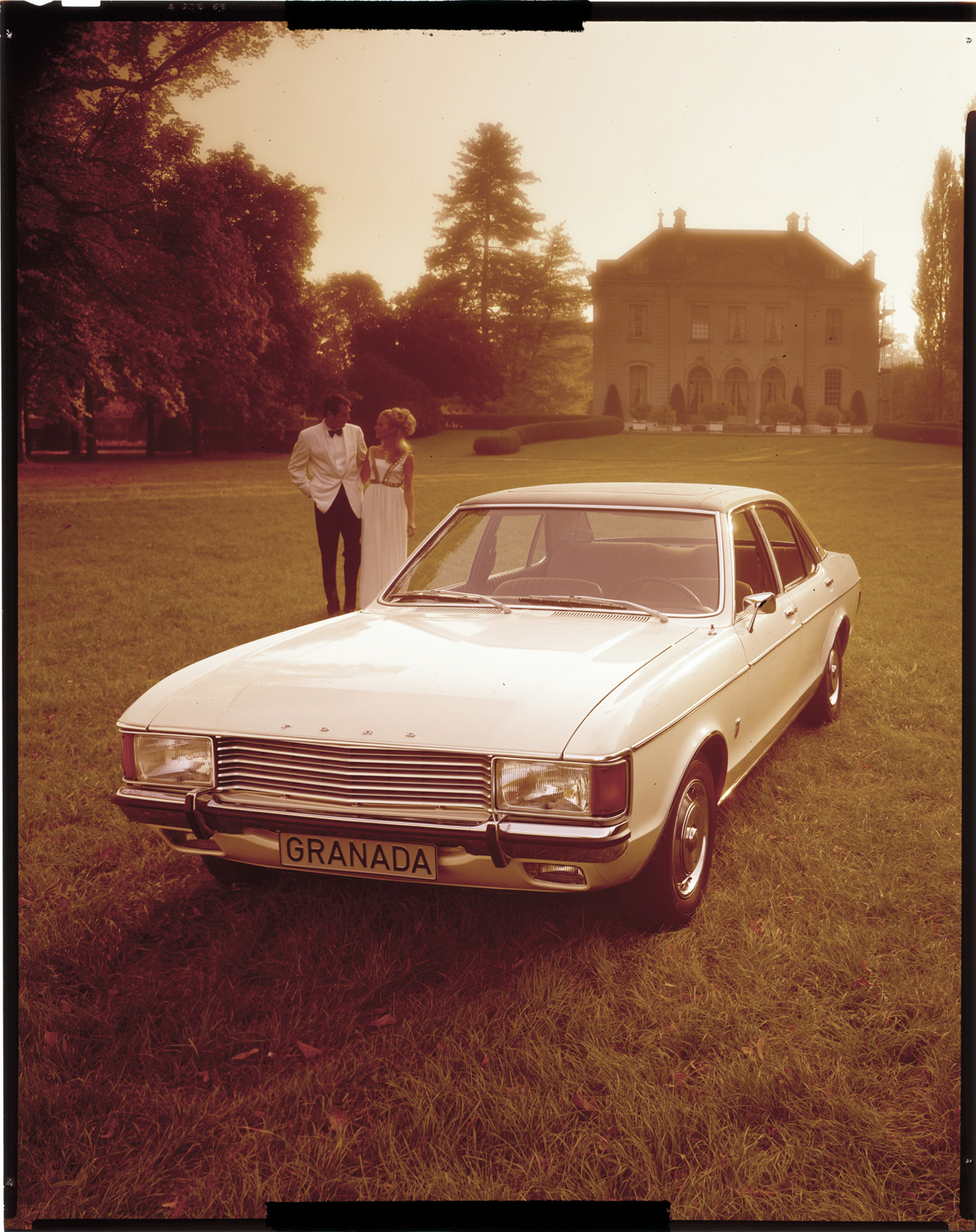 Favorite this☆ Ford Granada automobile Description: View of a man and woman posing with a Ford Granada sedan. House in background. Label on sleeve: "Ford British, Granada, 1970s." Details Resource ID: na037511 Creator: Boulevard Photographic (Firm) Subject: Granada automobile Advertising--Automobiles Transparencies Date Issued: Unknown year in the decade of the 1970s Format: 1 transparency : col. ; 10 x 8 in. Member of: National Automotive History Collection Mickey McGuire and Jim Northmore Boulevard Photographic Collection Filing Location: Ford, 7:5 Rights: Physical rights are retained by DPL. Copyright is retained in accordance with U.S. copyright laws.