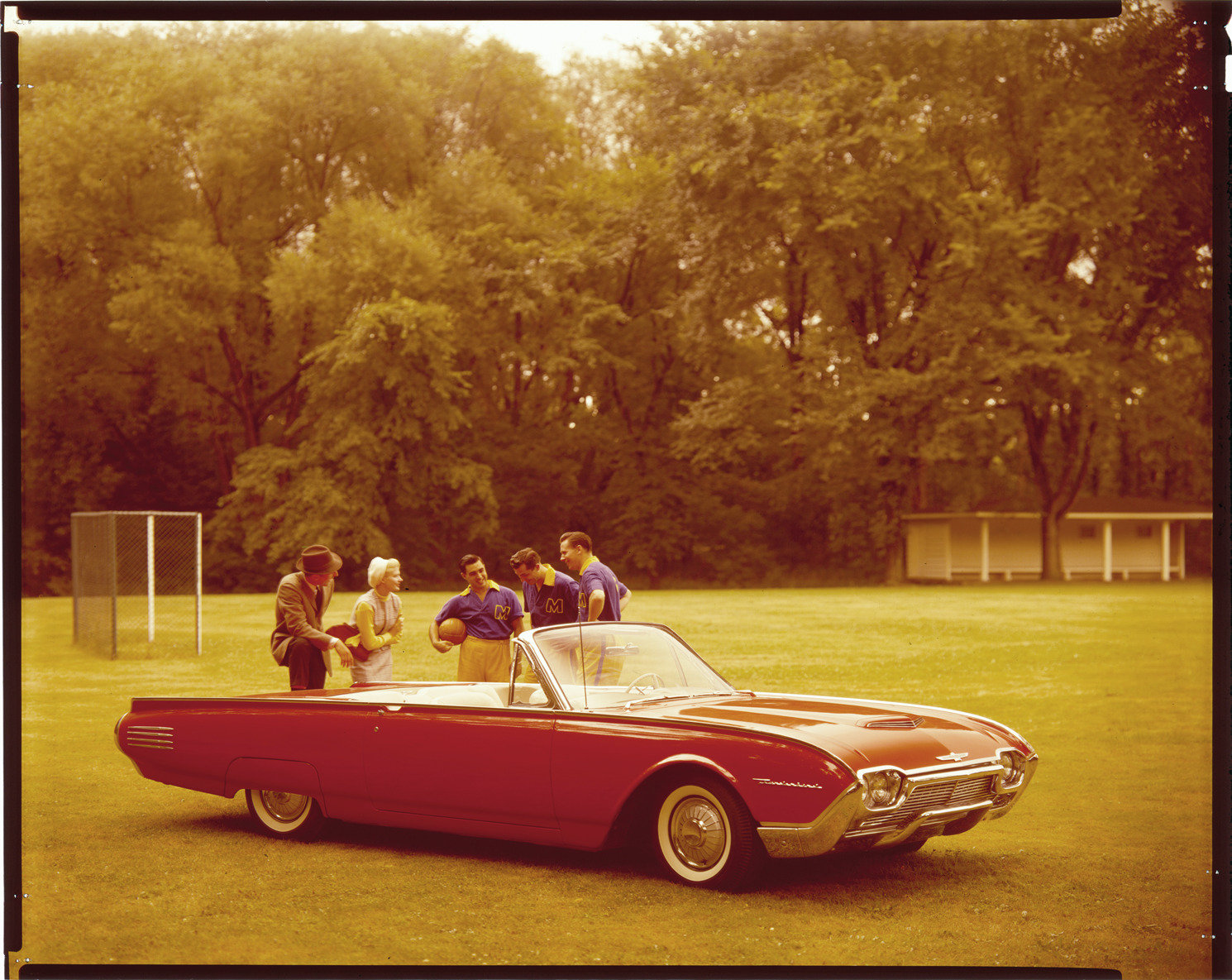 Favorite this☆ 1961 Ford Thunderbird automobile Description: View of a man, woman and three basketball players posing outdoors with a 1961 Ford Thunderbird convertible. Label on sleeve: "Ford Motor Co., Ford Thunderbird convertible, 1961." Details Resource ID: na037564 Creator: Boulevard Photographic (Firm) Subject: Thunderbird automobile Automobiles, Convertible Advertising--Automobiles Transparencies Date Issued: 1961 Format: 1 transparency : col. ; 8 x 10 in. Member of: National Automotive History Collection Mickey McGuire and Jim Northmore Boulevard Photographic Collection Filing Location: Ford, 5:18 Rights: Physical rights are retained by DPL. Copyright is retained in accordance with U.S. copyright laws.