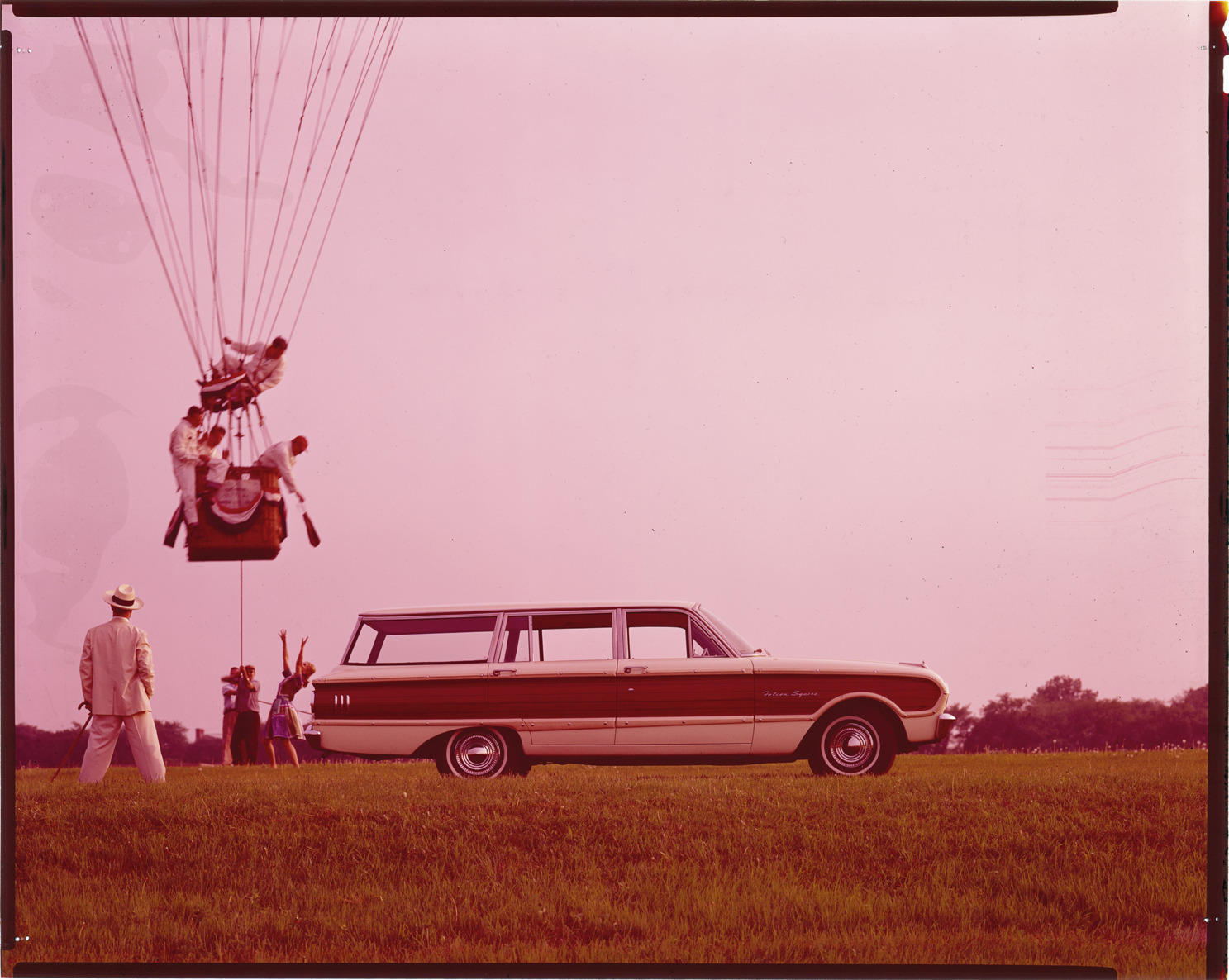 Favorite this☆ 1963 Ford Falcon Squire station wagon Description: View of a 1963 Ford Falcon Squire station wagon. Man stands in foreground; several men in basket of hot air balloon in background. Label on sleeve: "Ford Motor Co., Ford Falcon wagon, 1963." Details Resource ID: na037569 Creator: Boulevard Photographic (Firm) Subject: Ford Falcon automobile Station wagons Hot air balloons Advertising--Automobiles Transparencies Date Issued: 1963 Format: 1 transparency : col. ; 8 x 10 in. Member of: National Automotive History Collection Mickey McGuire and Jim Northmore Boulevard Photographic Collection Filing Location: Ford, 5:18 Rights: Physical rights are retained by DPL. Copyright is retained in accordance with U.S. copyright laws.