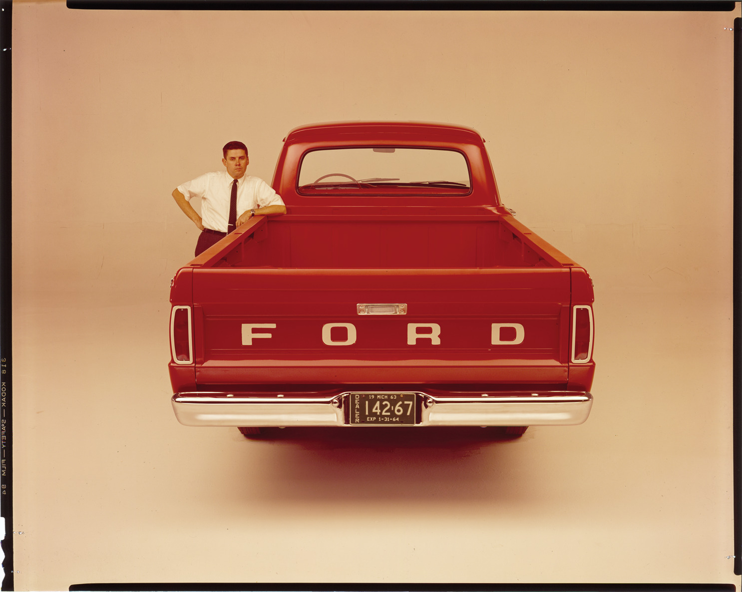 Favorite this☆ Ford truck Description: Rear view of a man posing with a Ford truck. Label on sleeve: "Ford Motor Co., Ford truck rear end, 1963-64." Details Resource ID: na037578 Creator: Boulevard Photographic (Firm) Subject: Ford trucks Pickup trucks Advertising Transparencies Date Issued: 1963 to 1964 Format: 1 transparency : col. ; 8 x 10 in. Member of: National Automotive History Collection Mickey McGuire and Jim Northmore Boulevard Photographic Collection Filing Location: Ford, 5:18 Rights: Physical rights are retained by DPL. Copyright is retained in accordance with U.S. copyright laws.