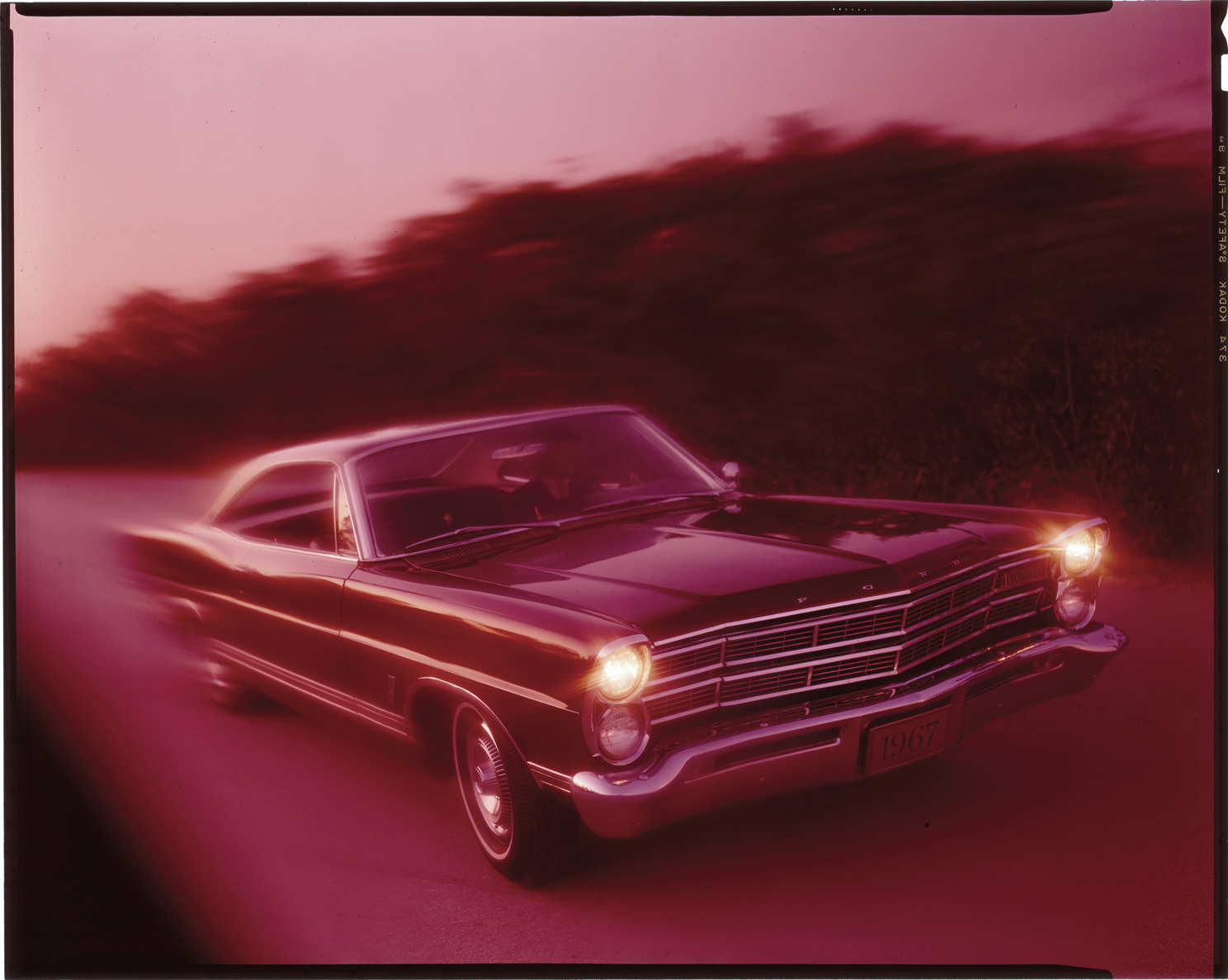 View of a 1967 Ford Galaxie coupe. Label on sleeve: "Ford Motor Co., Ford hdtp. Galaxie, 1967."