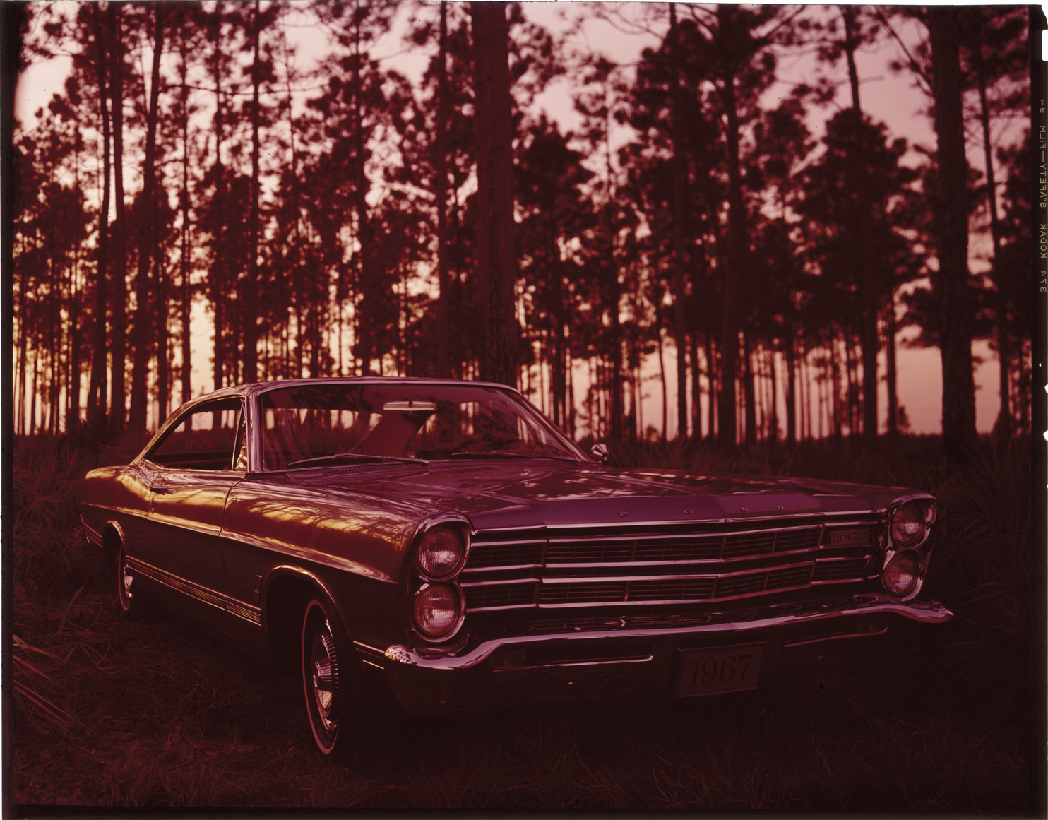 View of a 1967 Ford Galaxie coupe. Label on sleeve: "Ford Motor Co., Ford hdtp. Galaxie, 1967."