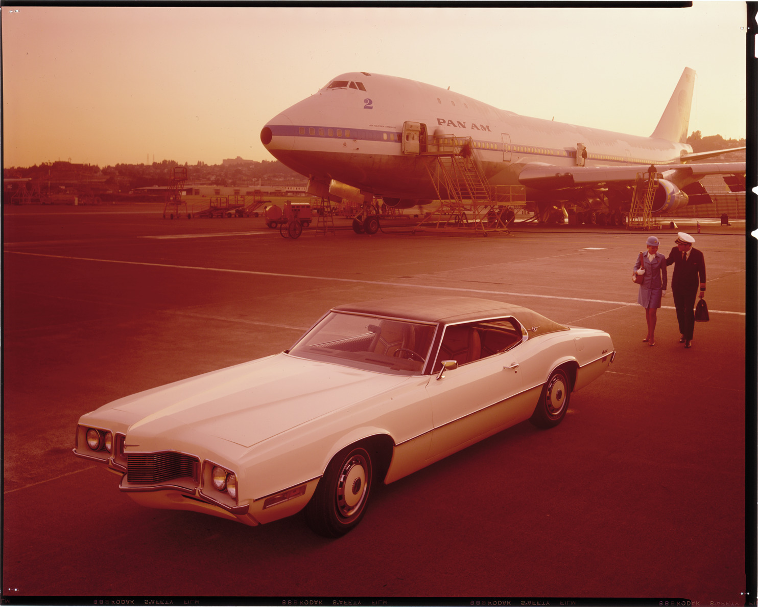 Favorite this☆ 1970 Ford Thunderbird automobile Description: View of a 1970 Ford Thunderbird coupe at an airport. Captain and flight attendant walk toward car; Pan Am plane in background. Label on sleeve: "Ford Motor Co., Ford Thunderbird, 1970." Details Resource ID: na037768 Creator: Boulevard Photographic (Firm) Subject: Thunderbird automobile Jet planes Advertising--Automobiles Transparencies Date Issued: 1970 Format: 1 transparency : col. ; 8 x 10 in. Member of: National Automotive History Collection Mickey McGuire and Jim Northmore Boulevard Photographic Collection Filing Location: Ford, 7:7 Rights: Physical rights are retained by DPL. Copyright is retained in accordance with U.S. copyright laws.