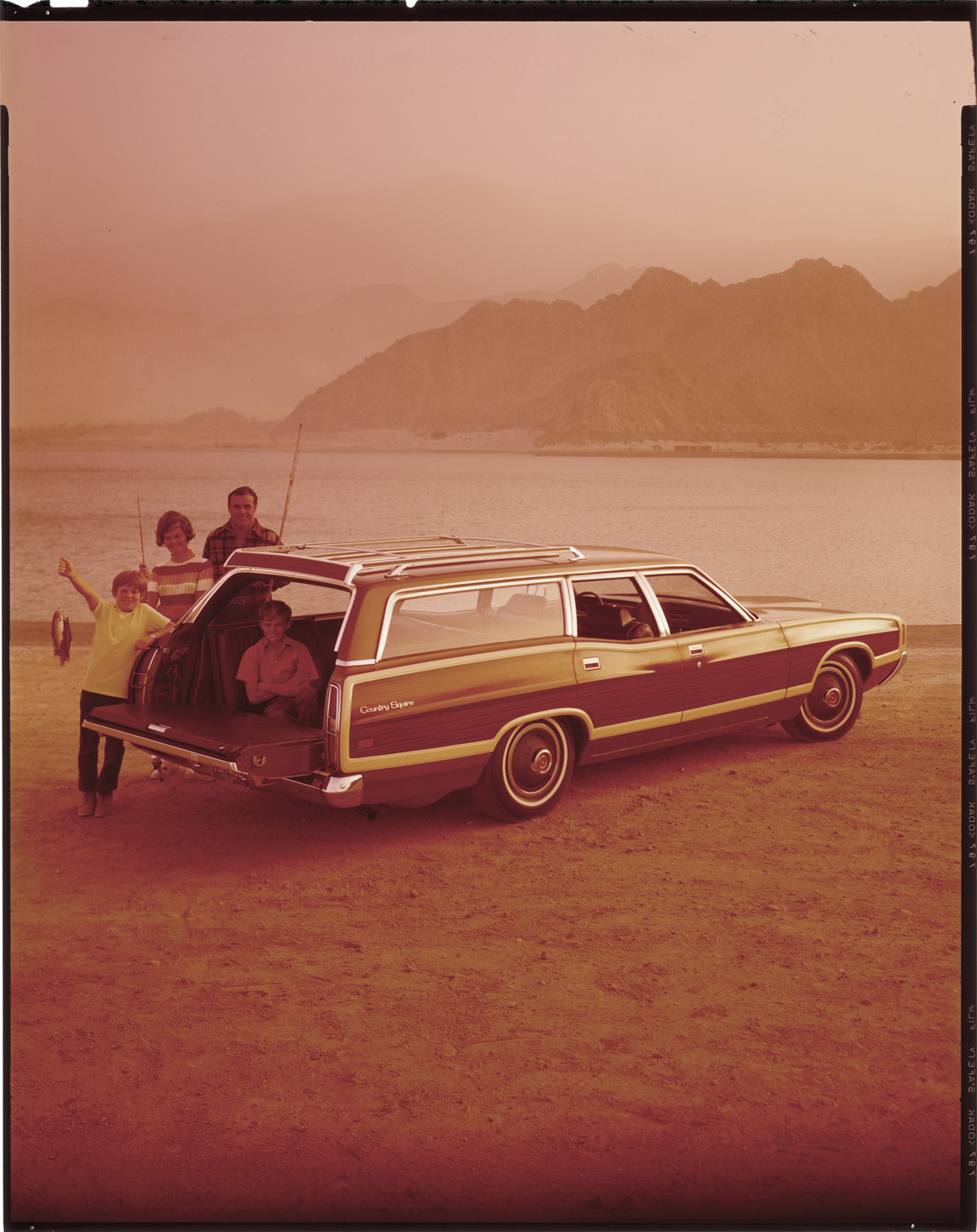 Favorite this☆ Ford Country Squire station wagon Description: View of a family, holding fishing poles and fish, posing with a Ford Country Squire station wagon. Label on sleeve: "Ford Motor Co., Ford wagon, 1971-72. Details Resource ID: na037860 Creator: Boulevard Photographic (Firm) Subject: Ford automobile Station wagons Advertising--Automobiles Transparencies Date Issued: 1971 to 1972 Format: 1 transparency : col. ; 10 x 8 in. Member of: National Automotive History Collection Mickey McGuire and Jim Northmore Boulevard Photographic Collection Filing Location: Ford, 7:10 Rights: Physical rights are retained by DPL. Copyright is retained in accordance with U.S. copyright laws.