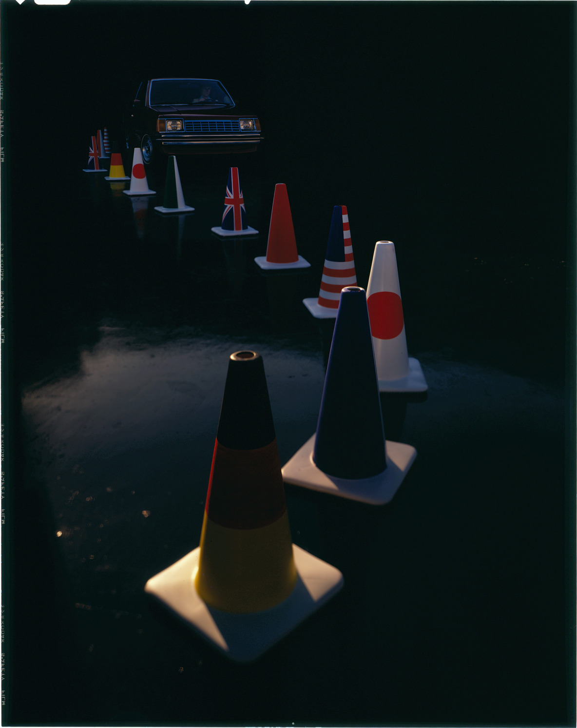 Favorite this☆ Advertisement for 1981 Ford Escort automobile Description: View of a man driving a 1981 Ford Escort past traffic cones covered with international flag motifs. Label on sleeve: "Ford Motor Co., Ford Escort advertising, 1981." Details Resource ID: na038006 Creator: Boulevard Photographic (Firm) Subject: Roads--Accessories Escort automobile Advertising--Automobiles Transparencies Date Issued: 1981 Format: 1 transparency : col. ; 10 x 8 in. Member of: National Automotive History Collection Mickey McGuire and Jim Northmore Boulevard Photographic Collection Filing Location: Ford, 8:8 Rights: Physical rights are retained by DPL. Copyright is retained in accordance with U.S. copyright laws.