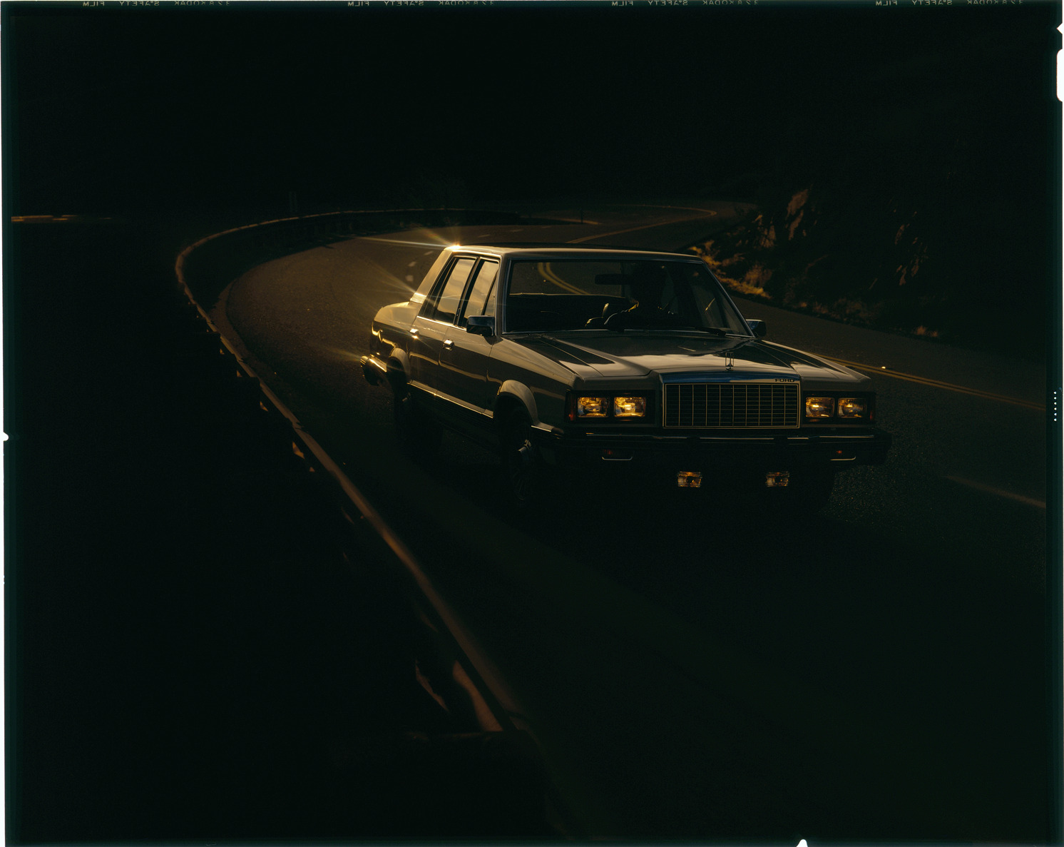 View of a man driving a Ford Granada sedan. Label on sleeve: "Ford Motor Co., Ford Granada, 1981-82."