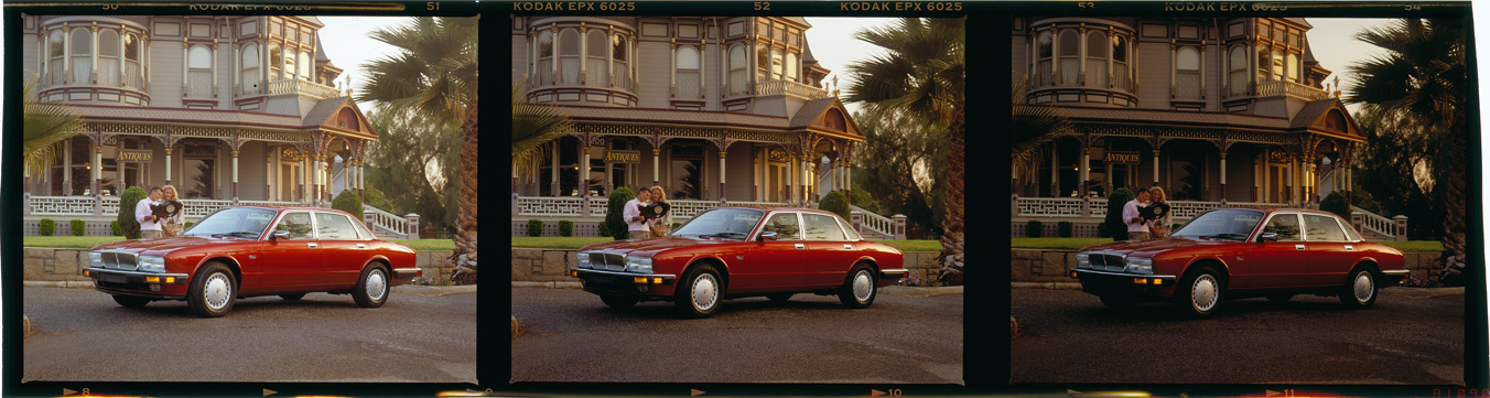 Favorite this☆ Jaguar XJ6 automobile Description: Three views of a man and woman posing with a Jaguar XJ6 sedan. Man holds a clock; Queen Anne style house with "Antiques" sign in background. Label on sleeve: "Jaguar XJ6, 1998-1999." Details Resource ID: na038151 Creator: Boulevard Photographic (Firm) Subject: Jaguar automobile Architecture, Queen Anne Wooden-frame buildings Advertising--Automobiles Transparencies Date Issued: 1998 to 1999 Format: 1 transparency : col. ; 2.5 x 9 in. Member of: National Automotive History Collection Mickey McGuire and Jim Northmore Boulevard Photographic Collection Filing Location: Jaguar, 8:19 Rights: Physical rights are retained by DPL. Copyright is retained in accordance with U.S. copyright laws.