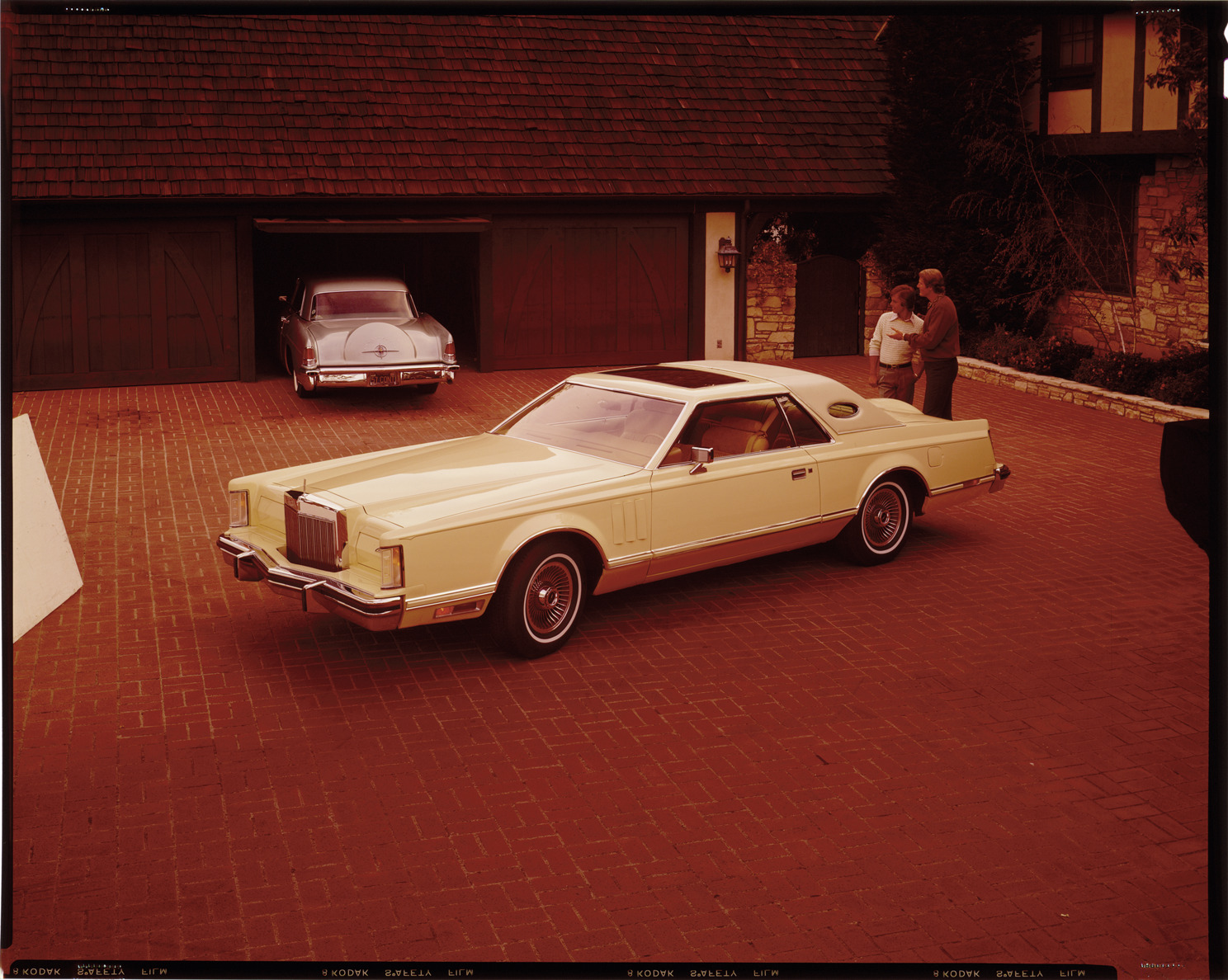 Favorite this☆ 1977 Lincoln Continental Mark V automobile Description: View of two men posing with a 1977 Lincoln Continental Mark V coupe. Lincoln Continental automobile is parked in front of garage in background. Label on sleeve: "Ford Motor Co., Lincoln Continental Mark V, 1977." Details Resource ID: na038228 Creator: Boulevard Photographic (Firm) Subject: Lincoln Continental automobile Advertising--Automobiles Transparencies Date Issued: 1977 Format: 1 transparency : col. ; 8 x 10 in. Member of: National Automotive History Collection Mickey McGuire and Jim Northmore Boulevard Photographic Collection Filing Location: Lincoln, 9:17 Rights: Physical rights are retained by DPL. Copyright is retained in accordance with U.S. copyright laws.