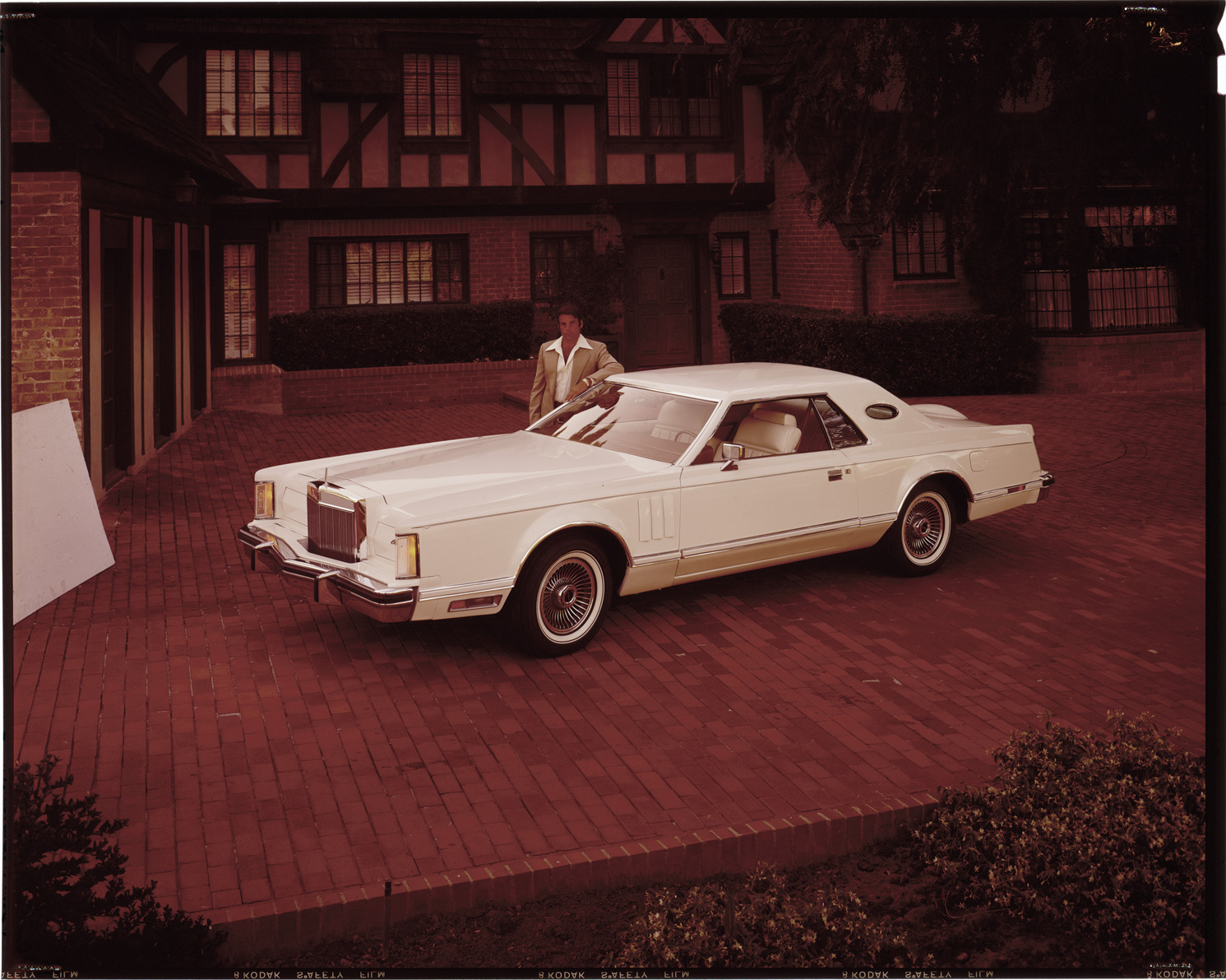 Favorite this☆ 1977 Lincoln Continental Mark V automobile Description: View of a man posing with a 1977 Lincoln Continental Mark V coupe. Tudor style house in background. Label on sleeve: "Ford Motor Co., Lincoln Continental Mark V, 1977." Details Resource ID: na038262 Creator: Boulevard Photographic (Firm) Subject: Lincoln Continental automobile Advertising--Automobiles Transparencies Date Issued: 1977 Format: 1 transparency : col. ; 8 x 10 in. Member of: National Automotive History Collection Mickey McGuire and Jim Northmore Boulevard Photographic Collection Filing Location: Lincoln, 9:18 Rights: Physical rights are retained by DPL. Copyright is retained in accordance with U.S. copyright laws.