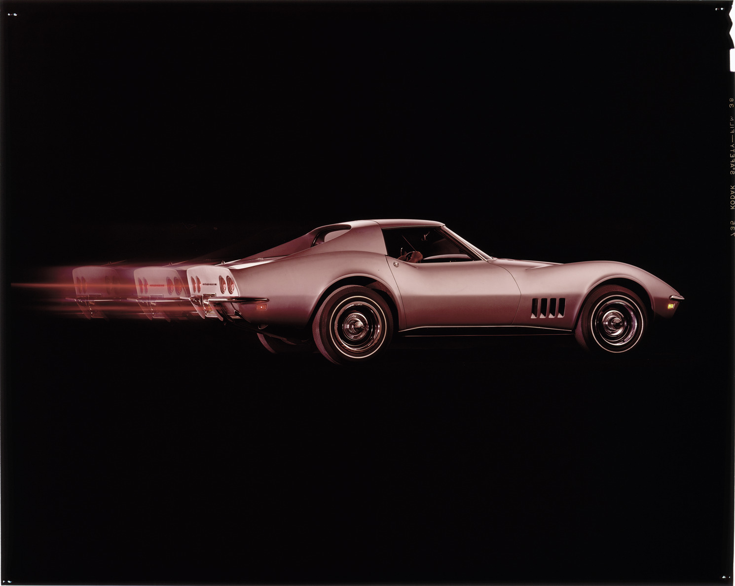 View of a 1968 Chevrolet Corvette coupe. Label on sleeve: "General Motors, Chevrolet Corvette, 1968."