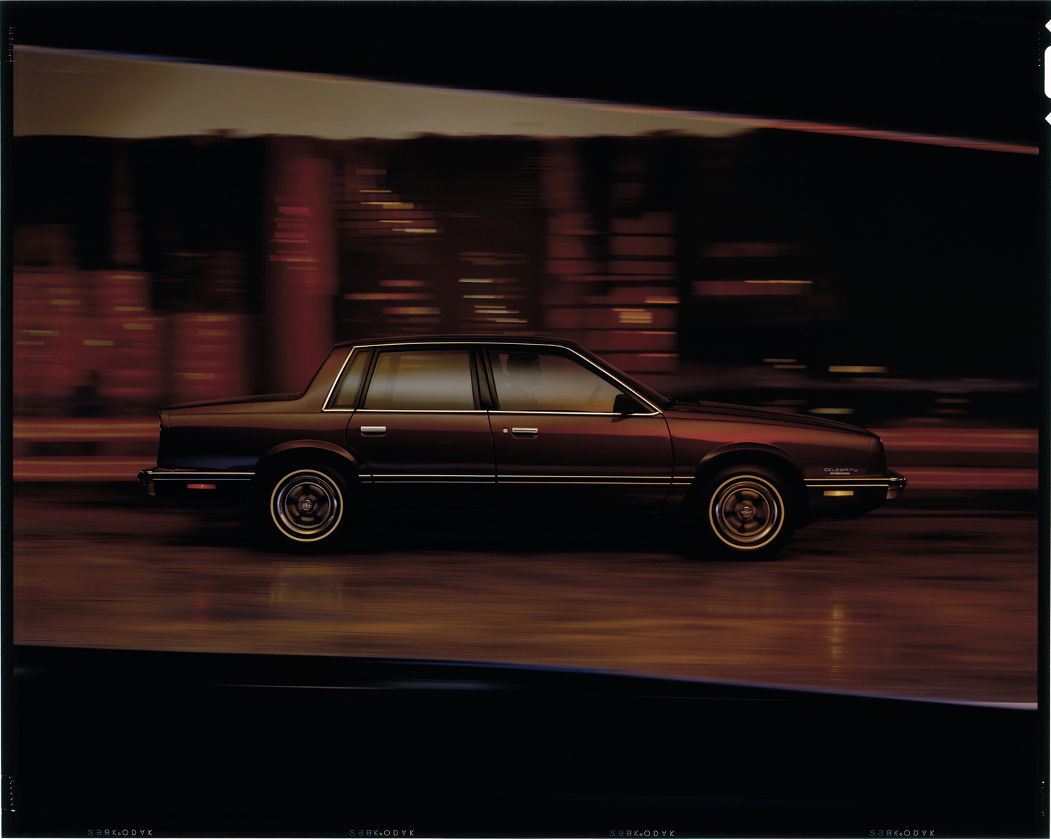 View of a 1982 Chevrolet Celebrity sedan. Label on sleeve: "General Motors, Chevrolet Celebrity, 1982."