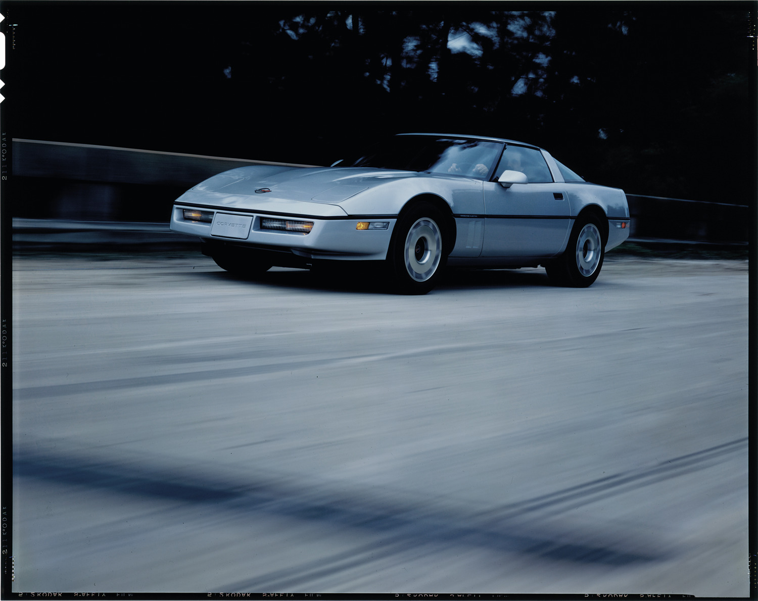 View of a man driving a Chevrolet Corvette coupe. Label on sleeve: "General Motors, Chevrolet Corvette, 1984-85."