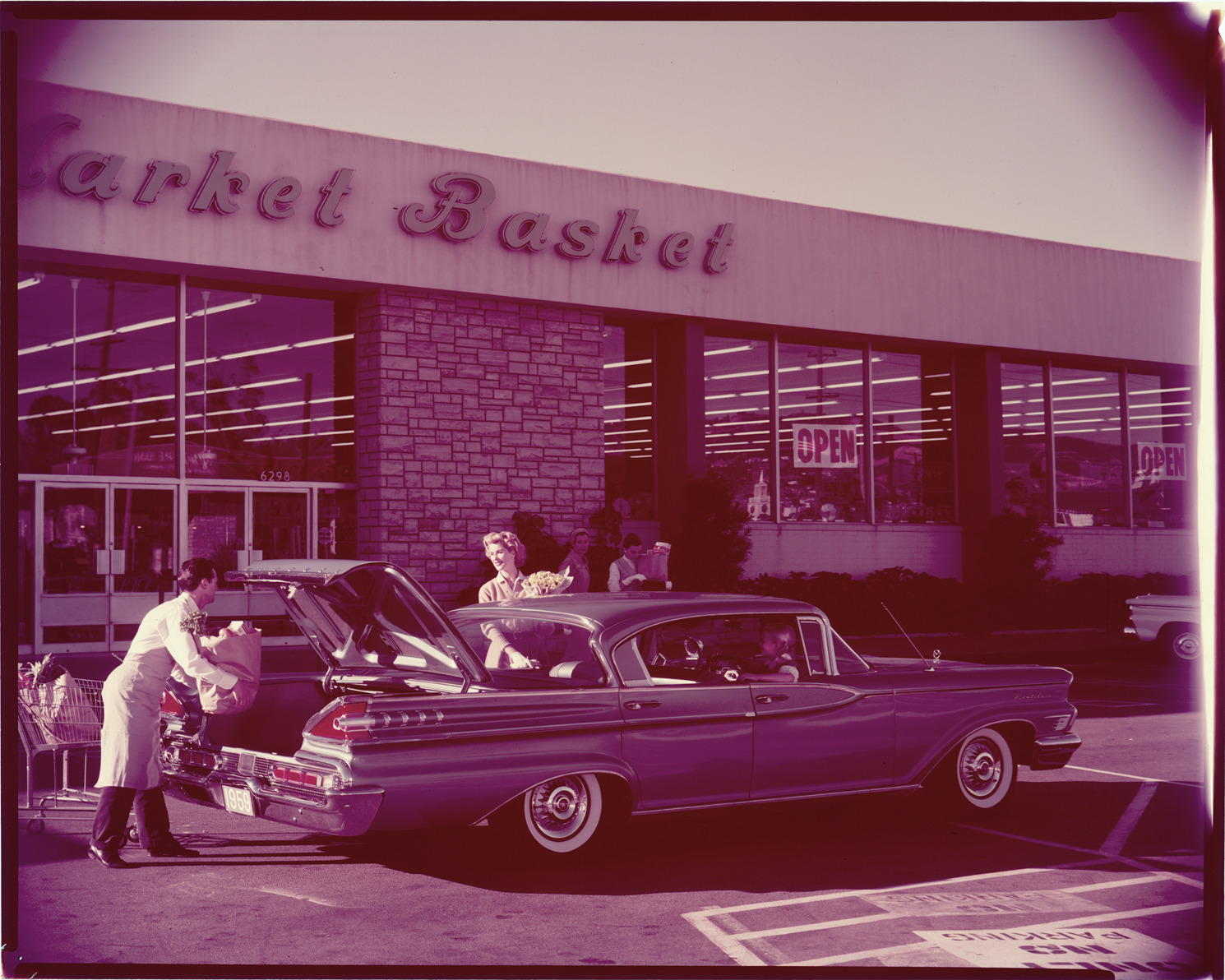 Favorite this☆ 1959 Mercury Montclair automobile Description: View of a woman and grocery store employee loading the trunk of a 1959 Mercury Montclair sedan. Label on sleeve: "Ford Motor Co., Mercury Montclair, 1959." Details Resource ID: na038662 Creator: Boulevard Photographic (Firm) Subject: Mercury automobile Groceries Advertising--Automobiles Transparencies Date Issued: 1959 Format: 1 transparency : col. ; 8 x 10 in. Member of: National Automotive History Collection Mickey McGuire and Jim Northmore Boulevard Photographic Collection Filing Location: Mercury, 10:7 Rights: Physical rights are retained by DPL. Copyright is retained in accordance with U.S. copyright laws.