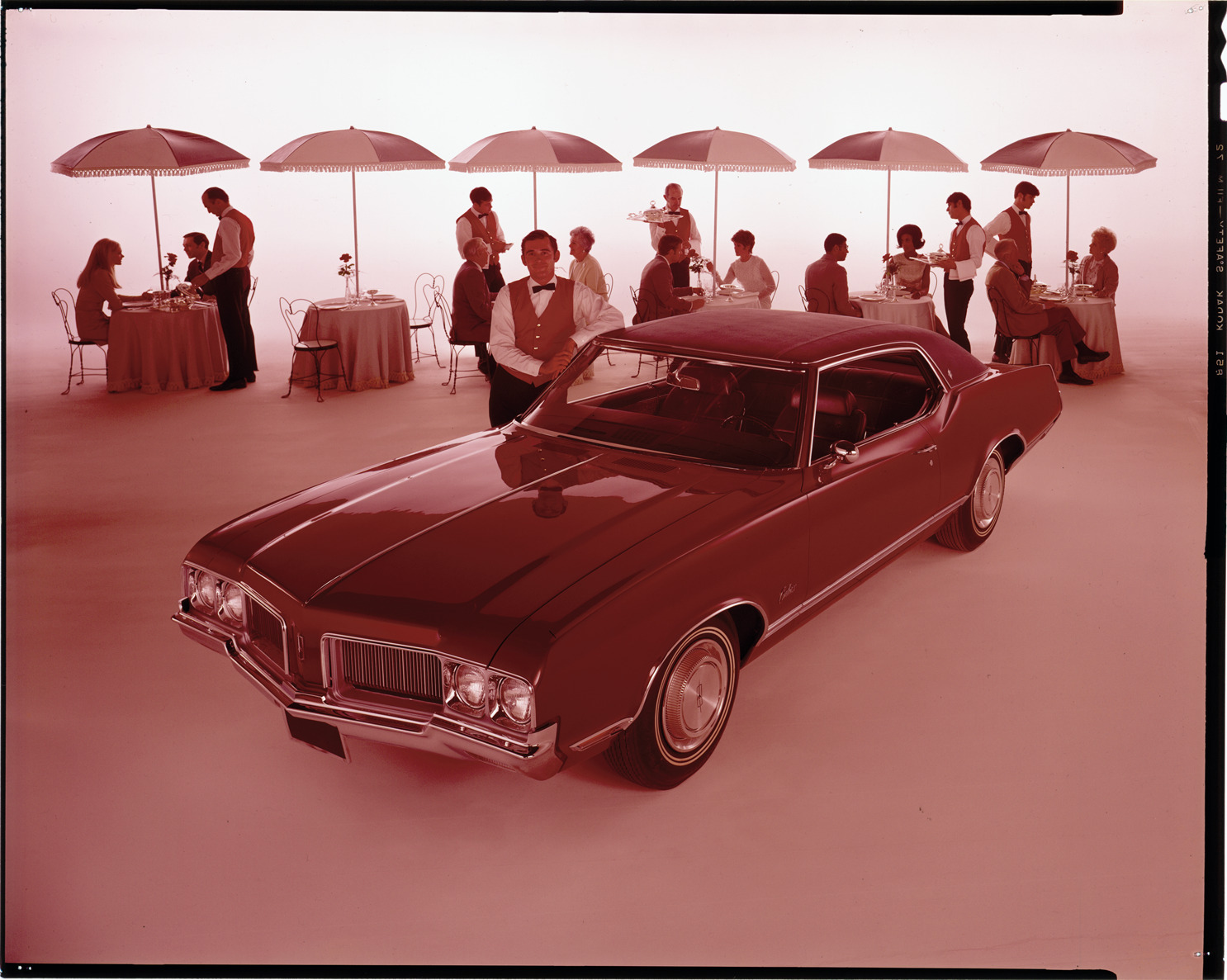 Favorite this☆ 1970 Oldsmobile Cutlass automobile Description: View of a 1970 Oldsmobile Cutlass coupe. Waiters and customers at restaurant patio tables in background. Label on sleeve: "General Motors, Oldsmobile Cutlass, 1970." Details Resource ID: na038795 Creator: Boulevard Photographic (Firm) Subject: Cutlass automobile Waiters Umbrellas Advertising--Automobiles Transparencies Date Issued: 1970 Format: 1 transparency : col. ; 8 x 10 in. Member of: National Automotive History Collection Mickey McGuire and Jim Northmore Boulevard Photographic Collection Filing Location: Oldsmobile, 11:16 Rights: Physical rights are retained by DPL. Copyright is retained in accordance with U.S. copyright laws.