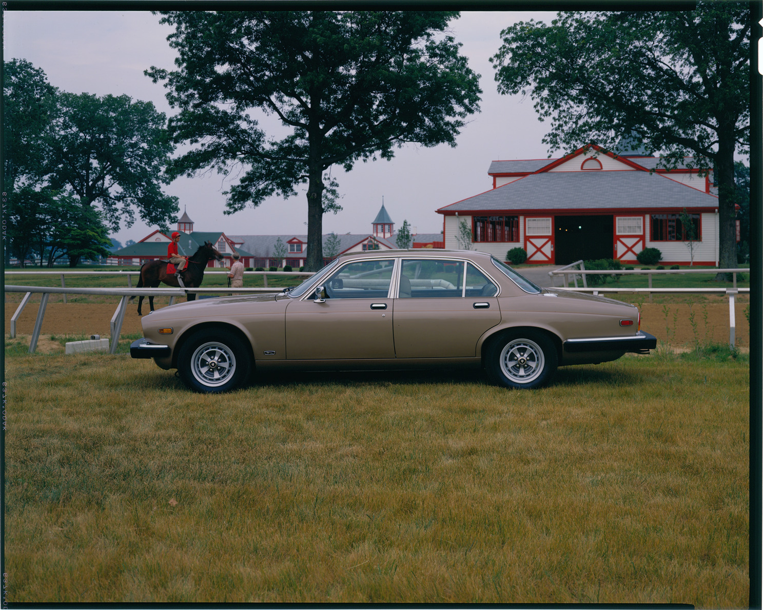Favorite this☆ Jaguar XJ6 automobile Description: View of a Jaguar XJ6 sedan. Stables and a man on horseback in background. Label on sleeve: "Jaguar XJ6, 1970s." Details Resource ID: na039019 Creator: Boulevard Photographic (Firm) Subject: Jaguar automobile Stables Horses Advertising--Automobiles Transparencies Date Issued: Unknown year in the decade of the 1970s Format: 1 transparency : col. ; 8 x 10 in. Member of: National Automotive History Collection Mickey McGuire and Jim Northmore Boulevard Photographic Collection Filing Location: Jaguar, 8:21 Rights: Physical rights are retained by DPL. Copyright is retained in accordance with U.S. copyright laws.
