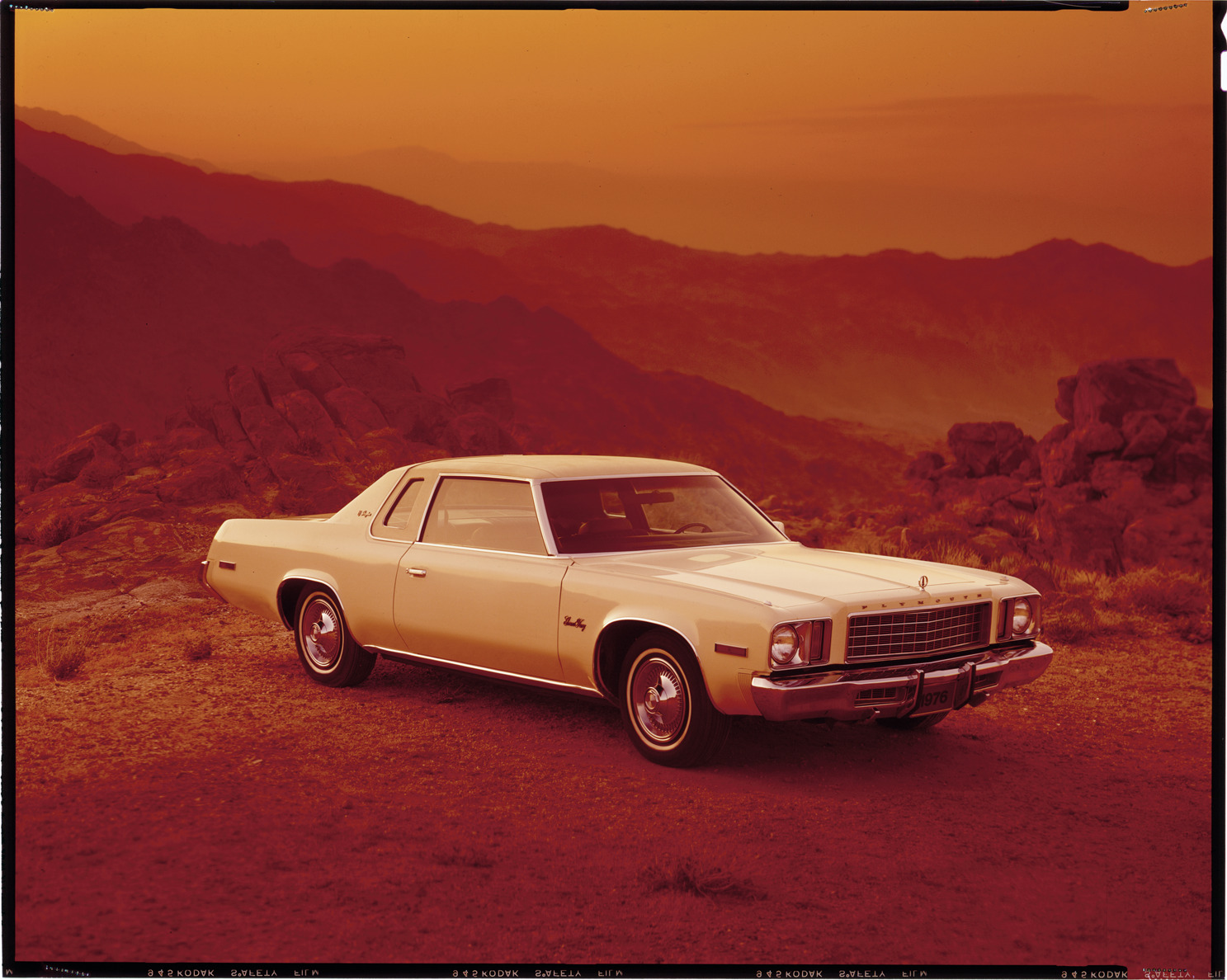 View of a 1976 Plymouth Grand Fury coupe. Label on sleeve: "Chrysler Corp., Plymouth Grand Fury, 1976."