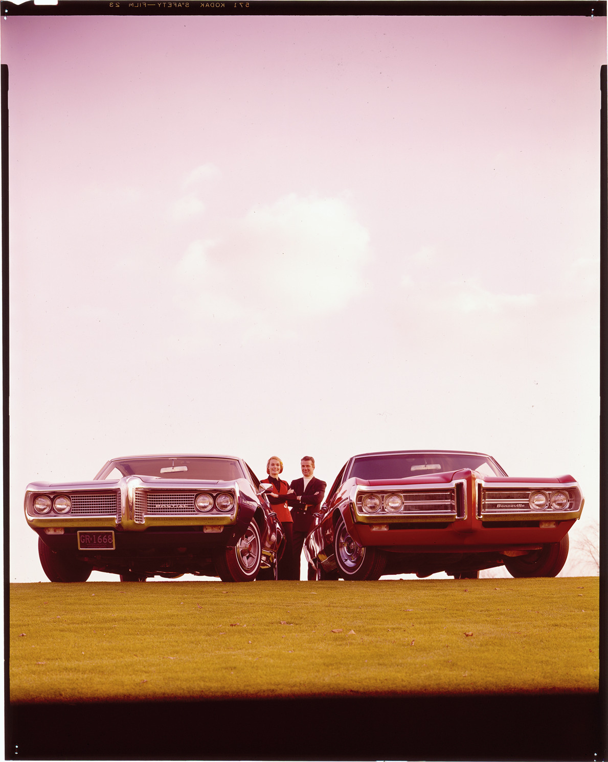 Favorite this☆ 1969 Pontiac Le Mans and Bonneville automobiles Description: View of a man and woman posing with a 1969 Pontiac Le Mans coupe and a 1969 Pontiac Bonneville sedan. Label on sleeve: "General Motors, Pontiac, Le Mans, Bonneville, 1969." Details Resource ID: na039187 Creator: Boulevard Photographic (Firm) Subject: Le Mans automobile Bonneville automobile Advertising--Automobiles Transparencies Date Issued: 1969 Format: 1 transparency : col. ; 10 x 8 in. Member of: National Automotive History Collection Mickey McGuire and Jim Northmore Boulevard Photographic Collection Filing Location: Pontiac, 13:6 Rights: Physical rights are retained by DPL. Copyright is retained in accordance with U.S. copyright laws.