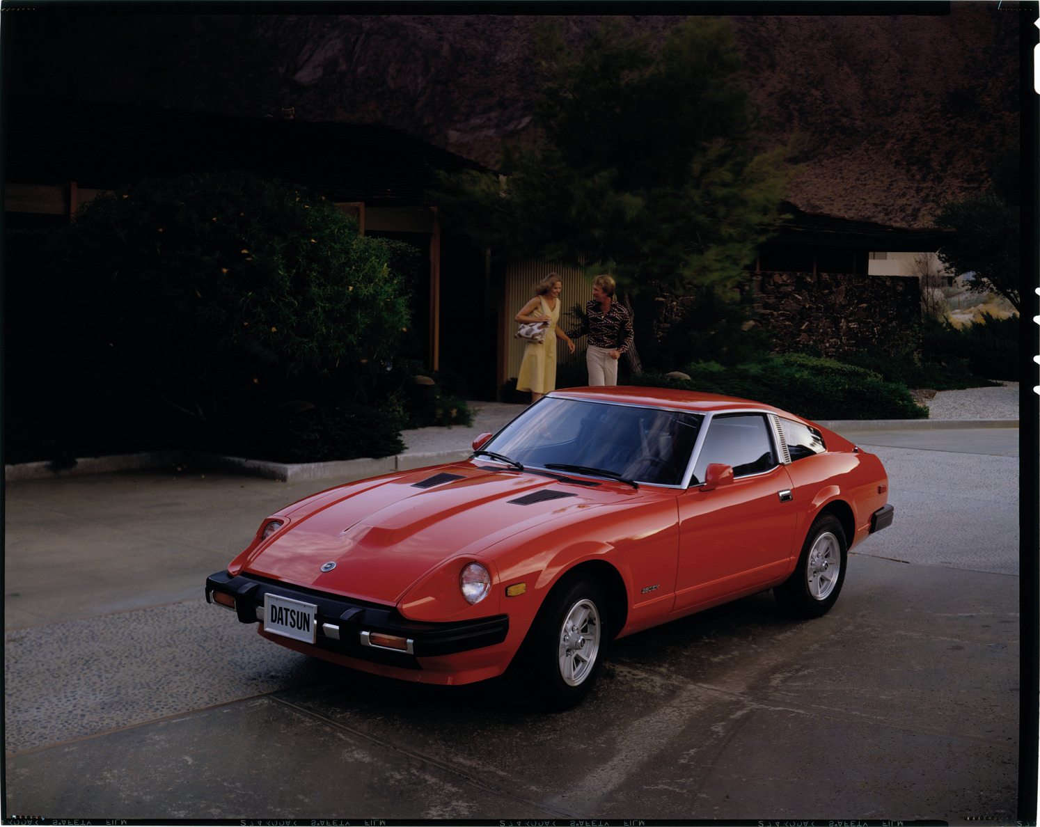 Favorite this☆ Datsun 280ZX automobile Description: View of a Datsun 280ZX coupe. Man and woman stand in front of building in background. Label on sleeve: "Datsun. Datsun 280ZX, 1980s." Details Resource ID: na039229 Creator: Boulevard Photographic (Firm) Subject: Datsun automobile Advertising--Automobiles Transparencies Date Issued: Unknown year in the decade of the 1980s Format: 1 transparency : col. ; 8 x 10 in. Member of: National Automotive History Collection Mickey McGuire and Jim Northmore Boulevard Photographic Collection Filing Location: Datsun, 14:10 Rights: Physical rights are retained by DPL. Copyright is retained in accordance with U.S. copyright laws.