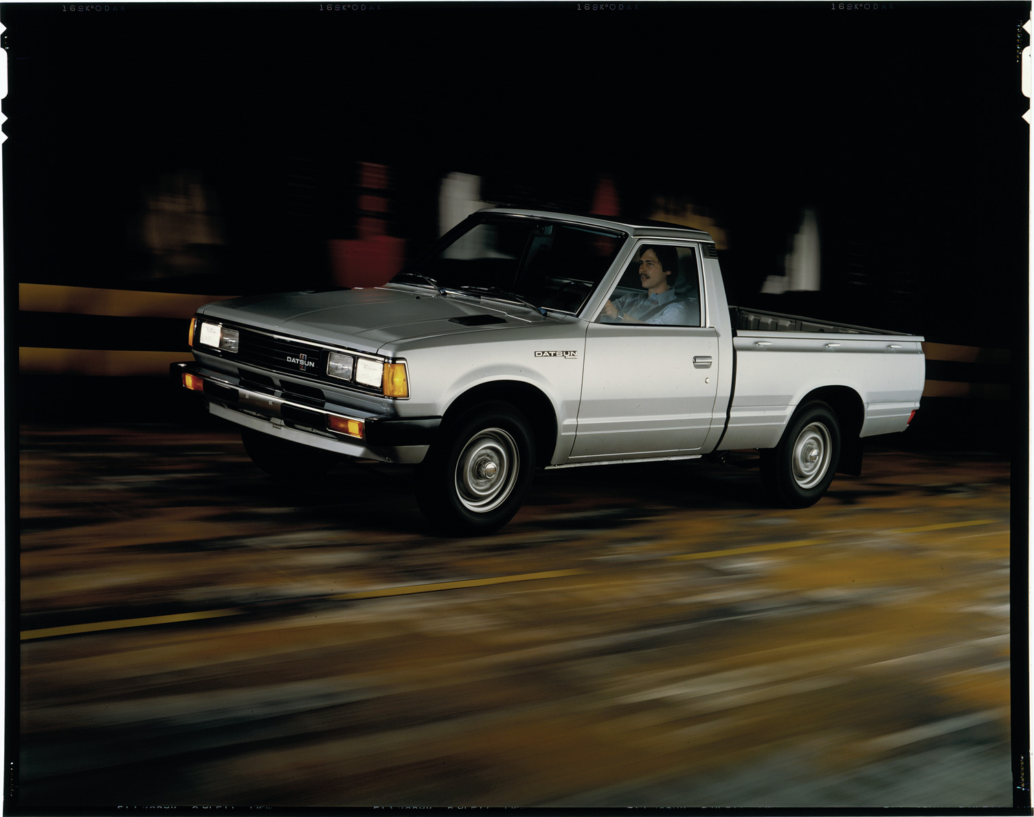 Favorite this☆ Datsun truck Description: View of a man driving a Datsun truck. Label on sleeve: "Datsun/Nissan. Datsun truck, 1980s." Details Resource ID: na039240 Creator: Boulevard Photographic (Firm) Subject: Datsun truck Pickup trucks Advertising Transparencies Date Issued: Unknown year in the decade of the 1980s Format: 1 transparency : col. ; 8 x 10 in. Member of: National Automotive History Collection Mickey McGuire and Jim Northmore Boulevard Photographic Collection Filing Location: Datsun, 14:10 Rights: Physical rights are retained by DPL. Copyright is retained in accordance with U.S. copyright laws.