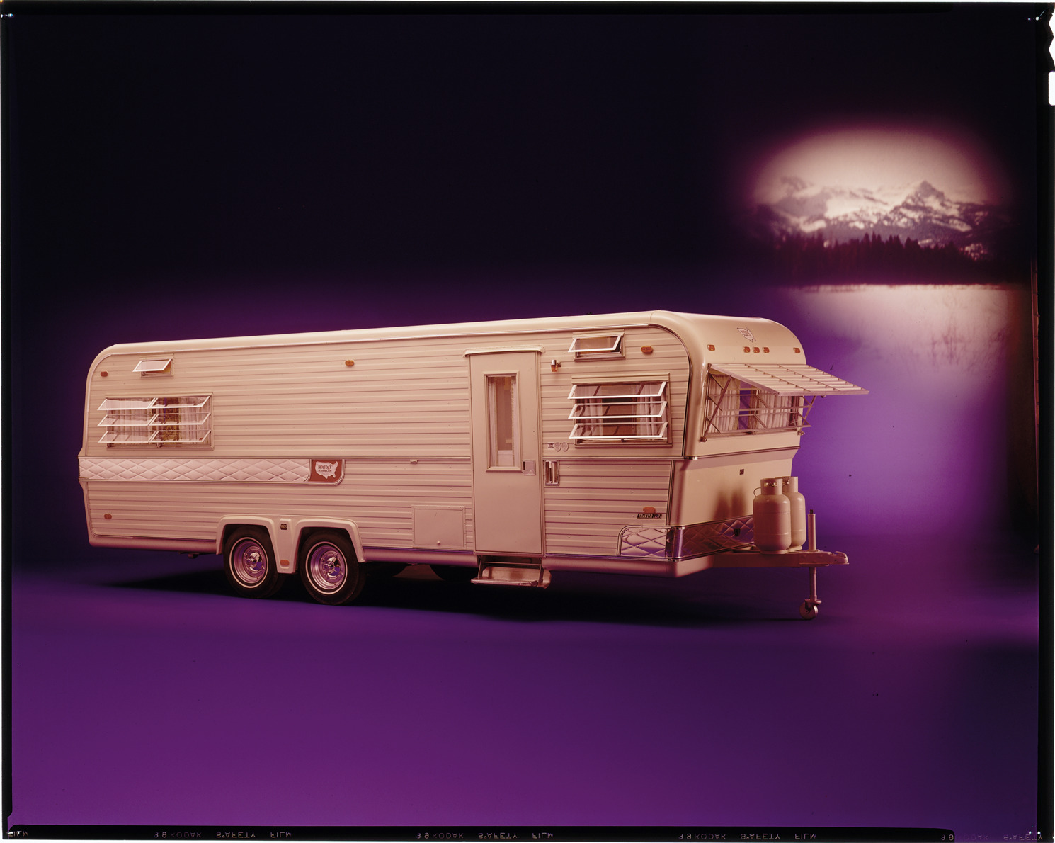 Favorite this☆ Holiday Rambler Royal Holiday travel trailer Description: View of a Royal Holiday travel trailer, manufactured by the Holiday Rambler Company. Image of mountains projected in background. Label on sleeve: "Holiday Rambler Company, Royal Holiday, date unknown." Details Resource ID: na039345 Creator: Boulevard Photographic (Firm) Subject: Travel trailers Recreational vehicles Holiday Rambler Company Advertising Transparencies Date Issued: Unknown year Format: 1 transparency : col. ; 8 x 10 in. Member of: National Automotive History Collection Mickey McGuire and Jim Northmore Boulevard Photographic Collection Filing Location: Recreational vehicles, 14:14 Rights: Physical rights are retained by DPL. Copyright is retained in accordance with U.S. copyright laws.