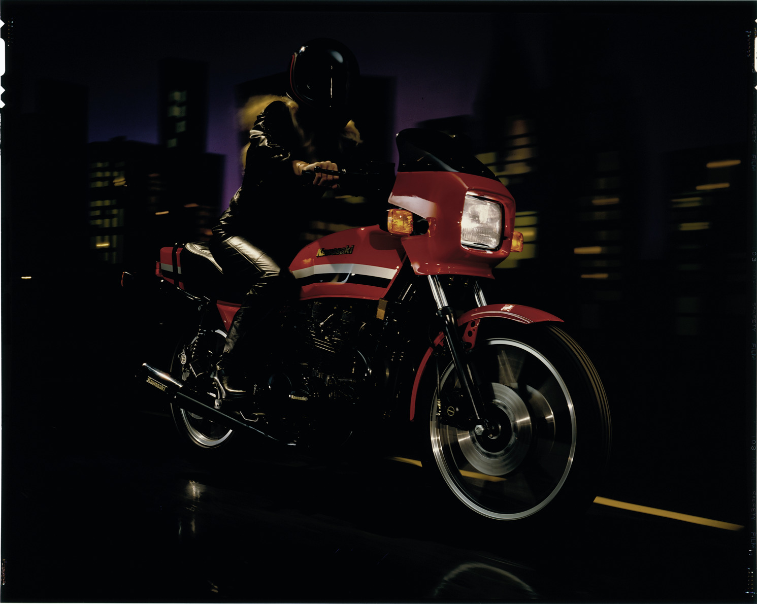 Favorite this☆ Kawasaki motorcycle Description: View of a man riding a Kawasaki motorcycle. Label on sleeve: "Kawasaki." Details Resource ID: na039354 Creator: Boulevard Photographic (Firm) Subject: Kawasaki motorcycle Motorcyclists Advertising--Motorcycles Transparencies Date Issued: Unknown year Format: 1 transparency : col. ; 8 x 10 in. Member of: National Automotive History Collection Mickey McGuire and Jim Northmore Boulevard Photographic Collection Filing Location: Motorcycles, 14:15 Rights: Physical rights are retained by DPL. Copyright is retained in accordance with U.S. copyright laws.