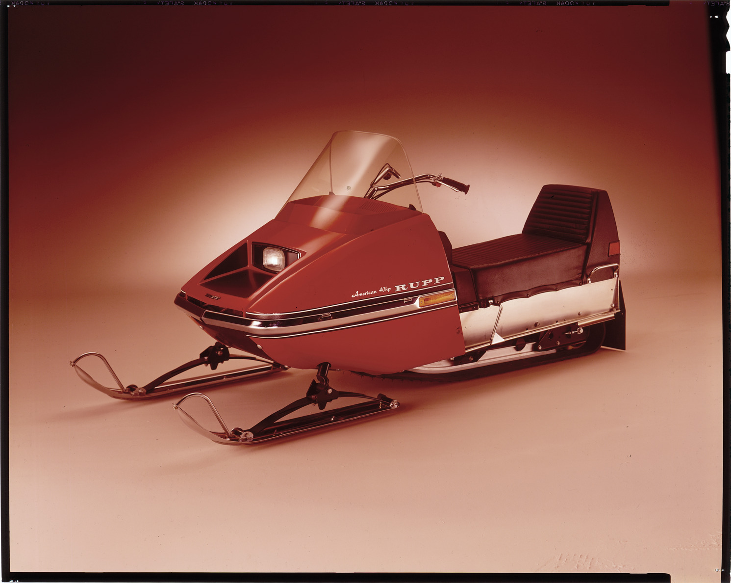 Favorite this☆ Rupp American snowmobile Description: View of a Rupp American snowmobile. Label on sleeve: "Rupp Manufacturing, American, date unknown." Details Resource ID: na039372 Creator: Boulevard Photographic (Firm) Subject: Snowmobiles Rupp Manufacturing Advertising Transparencies Date Issued: Unknown year Format: 1 transparency : col. ; 8 x 10 in. Member of: National Automotive History Collection Mickey McGuire and Jim Northmore Boulevard Photographic Collection Filing Location: Snowmobiles, 14:16 Rights: Physical rights are retained by DPL. Copyright is retained in accordance with U.S. copyright laws.