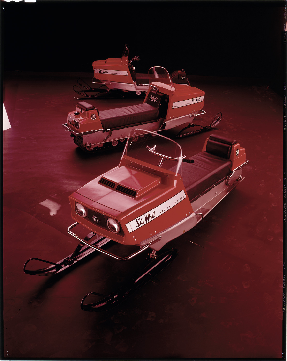 Favorite this☆ 1970 Ski Whiz snowmobiles Description: View of 1970 Ski-Whiz snowmobiles. Label on sleeve: "Massey-Ferguson, Ski-Whiz, 1970." Details Resource ID: na039378 Creator: Boulevard Photographic (Firm) Subject: Snowmobiles Massey-Ferguson, Inc. Advertising Transparencies Date Issued: 1970 Format: 1 transparency : col. ; 10 x 8 in. Member of: National Automotive History Collection Mickey McGuire and Jim Northmore Boulevard Photographic Collection Filing Location: Snowmobiles, 14:16 Rights: Physical rights are retained by DPL. Copyright is retained in accordance with U.S. copyright laws.