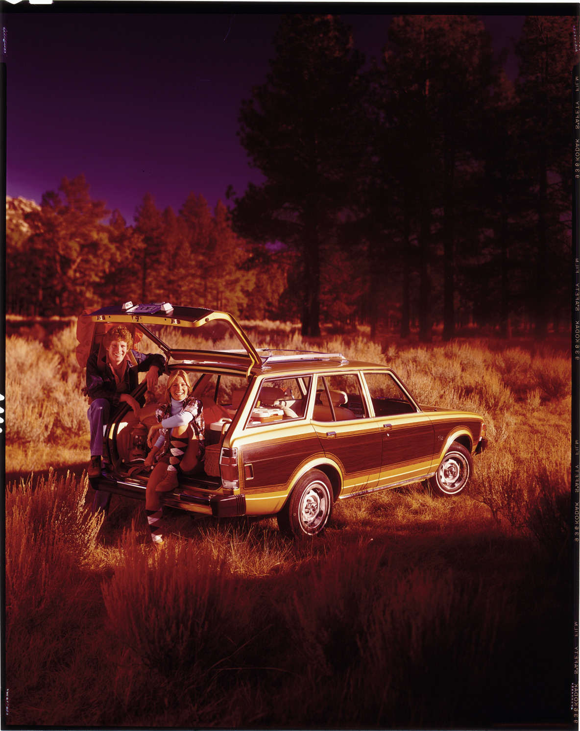 Favorite this☆ 1976 Dodge Colt station wagon Description: View of a man and woman posing with a 1976 Dodge Colt station wagon; open tailgate displays camping equipment. Label on sleeve: "Chrysler Corporation, Dodge Colt wagon, 1976." Details Resource ID: na039762 Creator: Boulevard Photographic (Firm) Subject: Dodge Colt automobile Station wagons Advertising--Automobiles Transparencies Date Issued: 1976 Format: 1 transparency : col. ; 10 x 8 in. Member of: National Automotive History Collection Mickey McGuire and Jim Northmore Boulevard Photographic Collection Filing Location: Dodge, 15:6 Rights: Physical rights are retained by DPL. Copyright is retained in accordance with U.S. copyright laws.