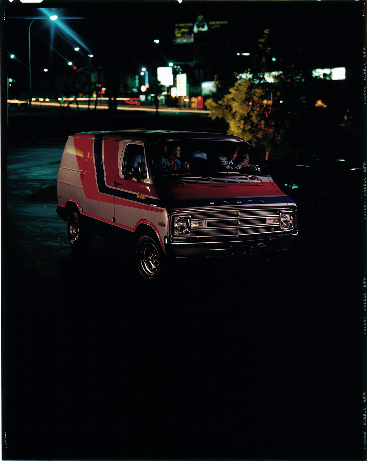 Favorite this☆ Dodge van Description: Nighttime view of a man and woman in a Dodge van. Label on sleeve: "Chrysler Corporation, Dodge van, 1970s." Details Resource ID: na039768 Creator: Boulevard Photographic (Firm) Subject: Dodge vans Advertising--Automobiles Transparencies Date Issued: Unknown year in the decade of the 1970s Format: 1 transparency : col. ; 10 x 8 in. Member of: National Automotive History Collection Mickey McGuire and Jim Northmore Boulevard Photographic Collection Filing Location: Dodge, 15:6 Rights: Physical rights are retained by DPL. Copyright is retained in accordance with U.S. copyright laws.
