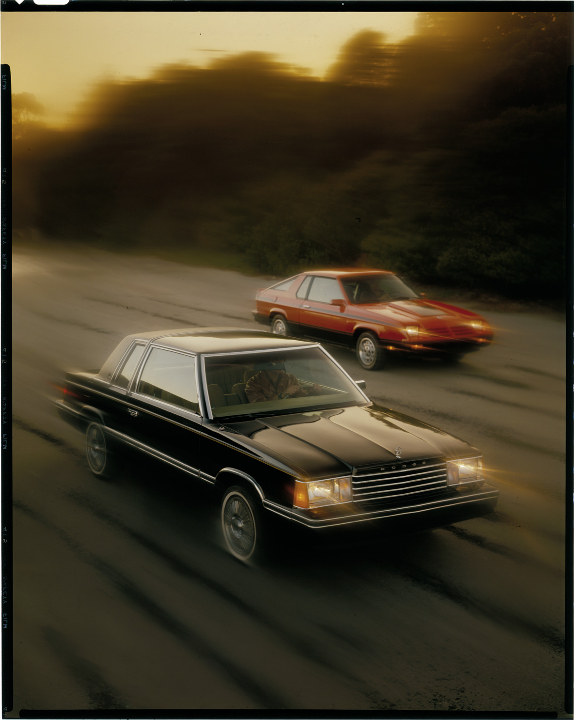Favorite this☆ Dodge Aries and Dodge Charger automobiles Description: View of a Dodge Aries coupe and a Dodge Charger coupe. Label on sleeve: "Chrysler Corporation, Dodge Aries/Charger, 1980s." Details Resource ID: na039838 Creator: Boulevard Photographic (Firm) Subject: Aries automobile Dodge Charger automobile Advertising--Automobiles Transparencies Date Issued: Unknown year in the decade of the 1980s Format: 1 transparency : col. ; 10 x 8 in. Member of: National Automotive History Collection Mickey McGuire and Jim Northmore Boulevard Photographic Collection Filing Location: Dodge, 15:10 Rights: Physical rights are retained by DPL. Copyright is retained in accordance with U.S. copyright laws.