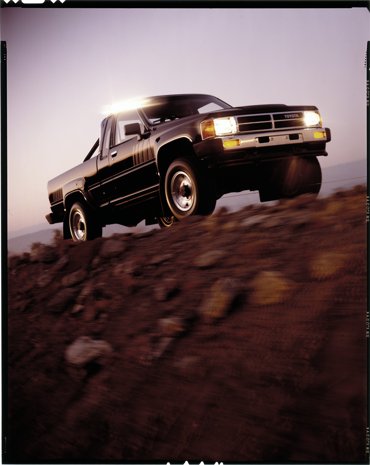 Favorite this☆ 1987 Toyota SR5 truck Description: View of a 1987 Toyota SR5 truck. Label on sleeve: "Toyota, Toyota SR-5 trucks, 1987." Details Resource ID: na039932 Creator: Boulevard Photographic (Firm) Subject: Toyota trucks Pickup trucks Advertising Transparencies Date Issued: 1987 Format: 1 transparency : col. ; 10 x 8 in. Member of: National Automotive History Collection Mickey McGuire and Jim Northmore Boulevard Photographic Collection Filing Location: Toyota, 15:15 Rights: Physical rights are retained by DPL. Copyright is retained in accordance with U.S. copyright laws.