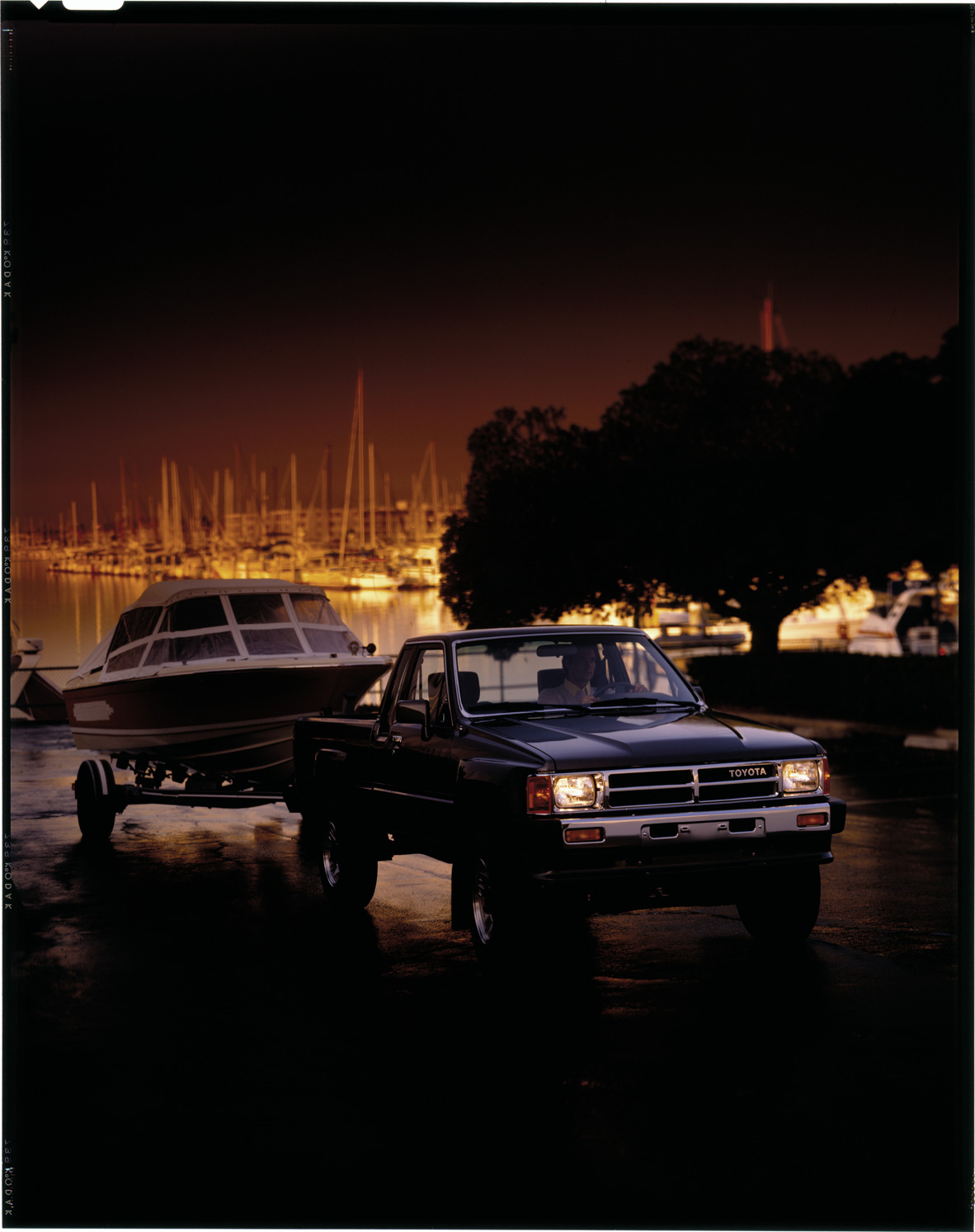 Favorite this☆ 1987 Toyota SR5 truck Description: View of a 1987 Toyota SR5 truck towing a boat. Label on sleeve: "Toyota, Toyota SR-5 trucks, 1987." Details Resource ID: na039938 Creator: Boulevard Photographic (Firm) Subject: Toyota trucks Pickup trucks Motorboats Advertising Transparencies Date Issued: 1987 Format: 1 transparency : col. ; 10 x 8 in. Member of: National Automotive History Collection Mickey McGuire and Jim Northmore Boulevard Photographic Collection Filing Location: Toyota, 15:15 Rights: Physical rights are retained by DPL. Copyright is retained in accordance with U.S. copyright laws.
