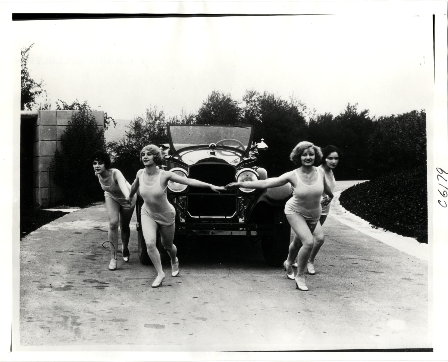Marion Morgan Dancers encircling 1927 Packard 343 Series 8 automobile
