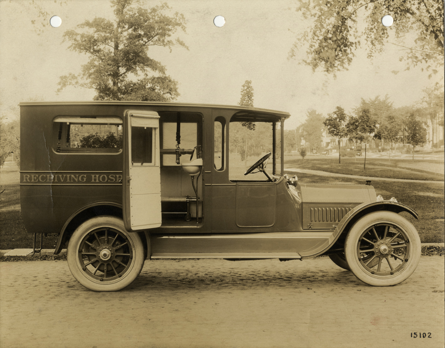 Favorite this☆ Cadillac ambulance Description: View of a Cadillac ambulance. "Receiving Hospital" is painted on side of ambulance; open side door shows sink and stretcher. Handwritten on back: "Ambulance-Cadillac, ca. 1914." Details Resource ID: na040134 Subject: Ambulances Cadillac automobile Photographic prints Date Issued: 1914 (year approximate) Format: 1 photographic print ; 7.5 x 9.5 in. Member of: National Automotive History Collection Filing Location: Ambulances--Cadillac Rights: Physical rights are retained by DPL. Copyright is retained in accordance with U.S. copyright laws.