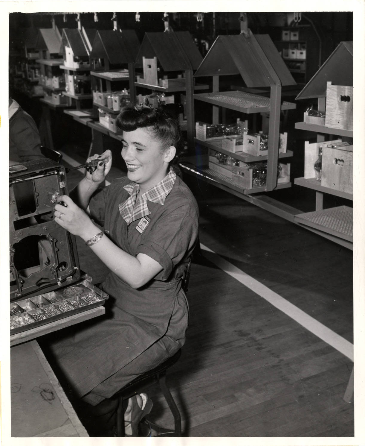 Woman worker making a bomb sight, AC Spark Plug Division
