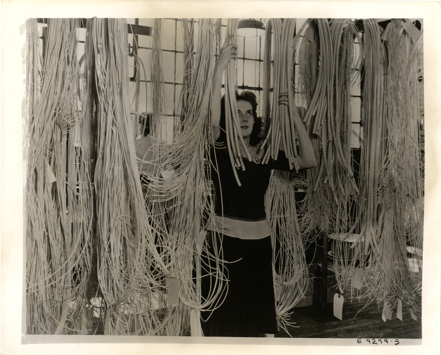 Rosemary Tremonti hanging wires for a B-29 Superfortress wire harness