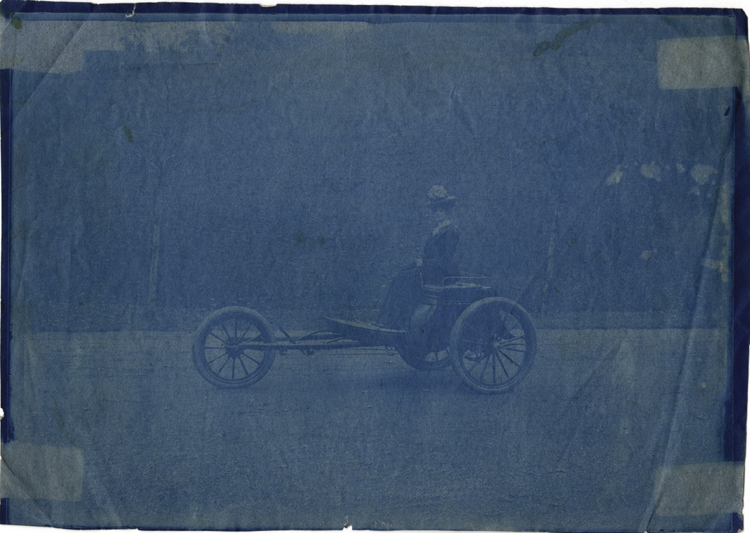 View of Dottie driving a 1901 Duryea 'Special' automobile. Typed on back: "Subject: Duryea automobiles. Collection: MS3/Charles E. Duryea Collection. Date: 1901. Source: Estate of Charles E. & M. Jerry Duryea. I.D.: Duryea 'Special.' Driver: 'Dottie.' Reading, Penn." Handwritten on back: "Duryea, Reading, Pa., 1901."