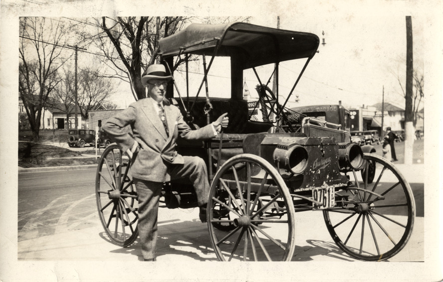 Favorite this☆ 1908-1910 Duryea buggyaut Description: View of a man posing with a 1908-1910 Duryea buggyaut. Typed on back: "Subject: Duryea automobile. Collection: MS3/Charles E. Duryea Collection. Date: 1908-1910. Source: Estate of Charles E. & M. Jerry Duryea. I.D.: Duryea buggyaut." Details Resource ID: na040508 Subject: Duryea automobile Photographic prints Format: 1 photographic print ; 4 x 6 in. Member of: National Automotive History Collection Filing Location: MS3/Charles E. Duryea collection, Folder 27, Duryea automobiles, 1908-1910 Negative Number: MS3/177 Rights: Physical rights are retained by DPL. Copyright is retained in accordance with U.S. copyright laws.